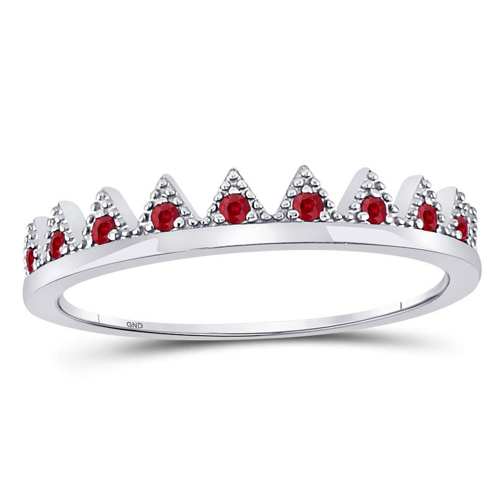 10kt White Gold Womens Round Ruby Beaded Chevron Stackable Band Ring 1/10 Cttw