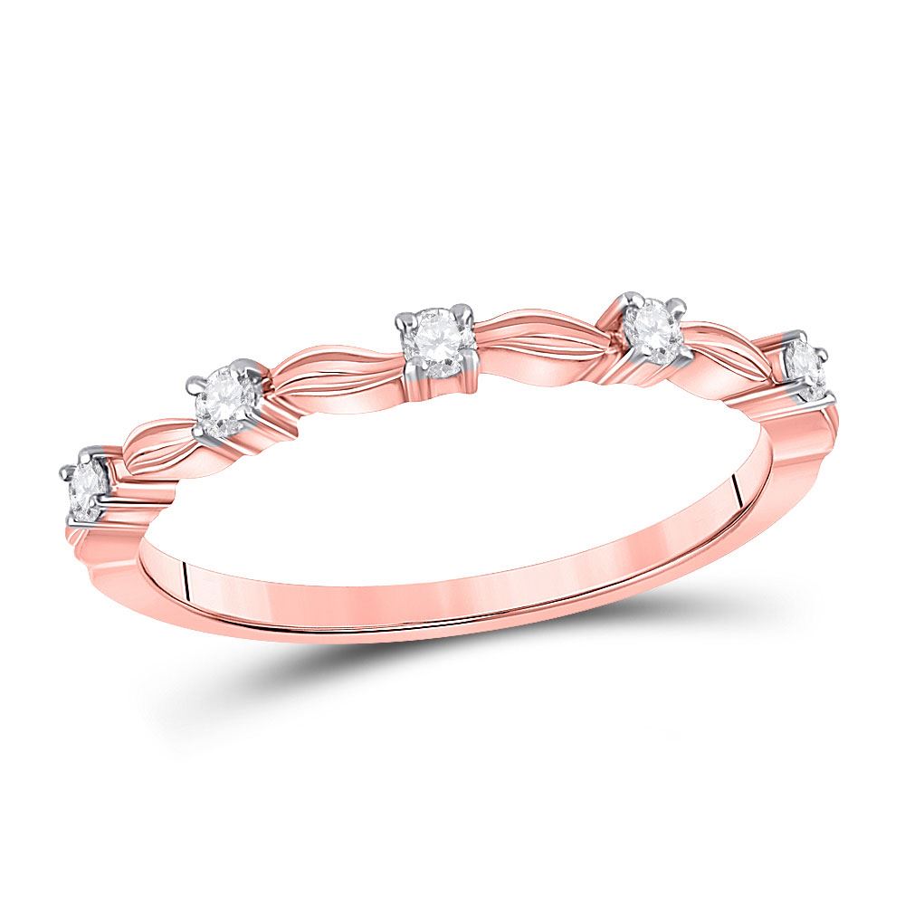 REF-16T4V - 1/10 CTW Womens Round Diamond 5-Stone Stackable Band Ring 14kt Rose Gold - REF-16T4V