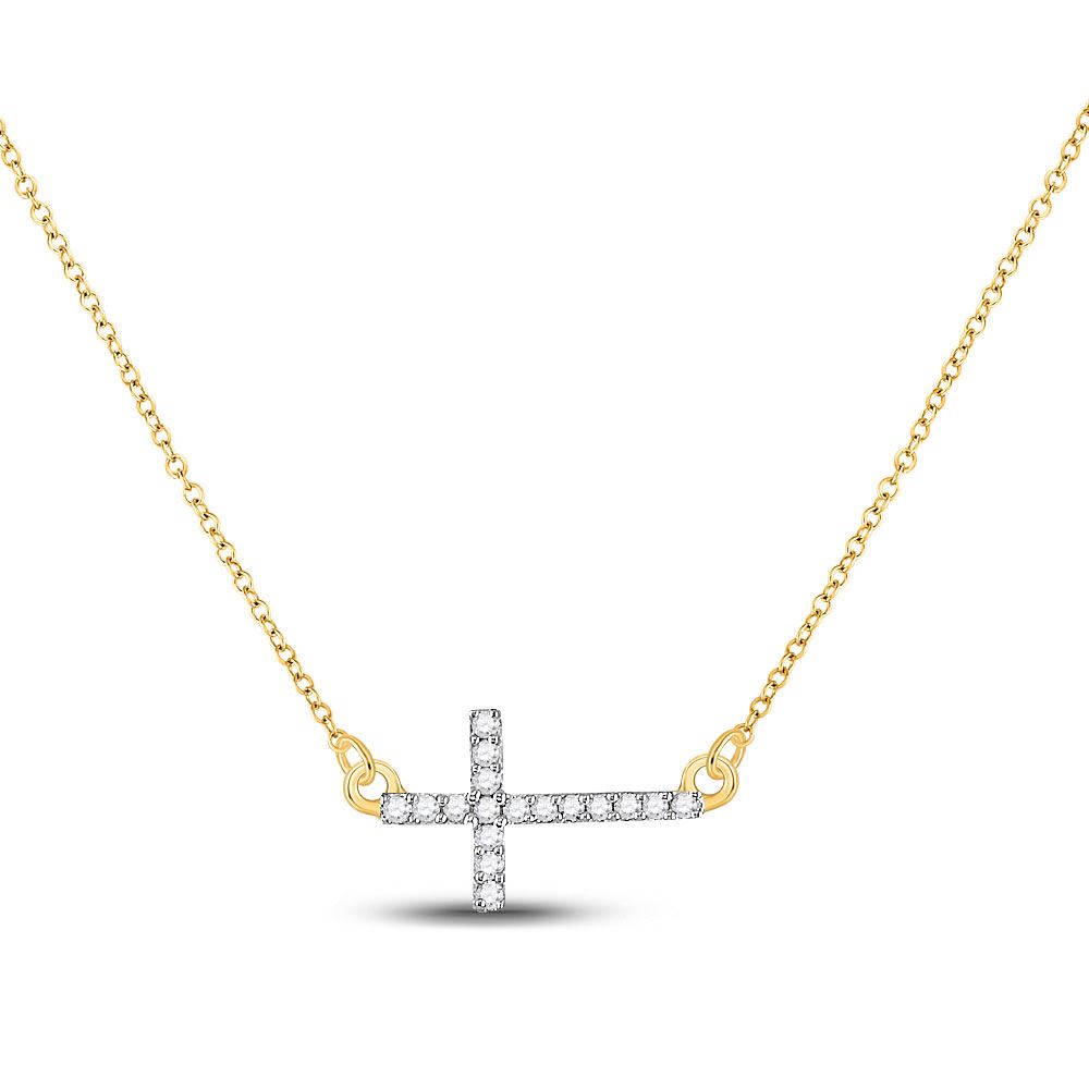 REF-15M2F - 1/10 CTW Womens Round Diamond Cross Pendant 10kt Yellow Gold - REF-15M2F