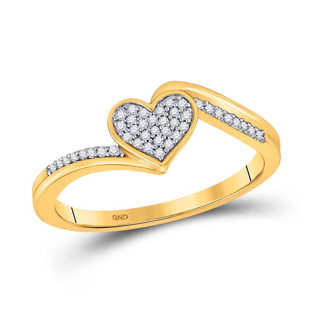 REF-13R5X - 1/10 CTW Womens Round Diamond Heart Ring 10kt Yellow Gold - REF-13R5X