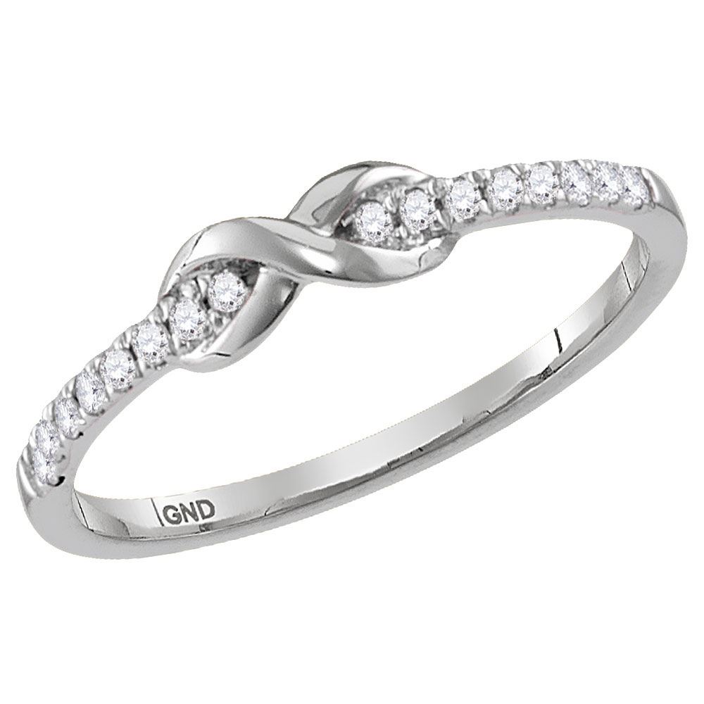 REF-17R6X - 1/10 CTW Womens Round Diamond Infinity Knot Stackable Band Ring 14kt White Gold - REF-17R6X