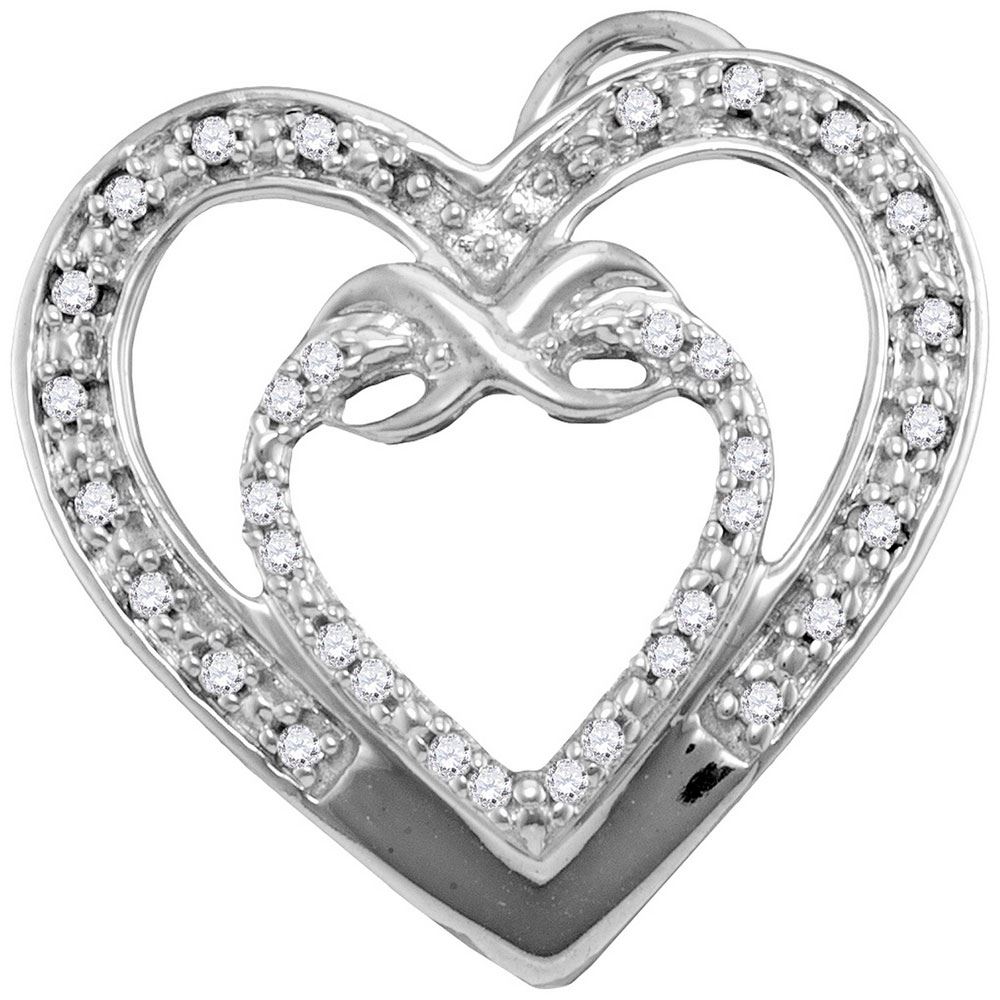 REF-10Y9N - 1/10 CTW Womens Round Diamond Nested Double Heart Pendant 10kt White Gold - REF-10Y9N