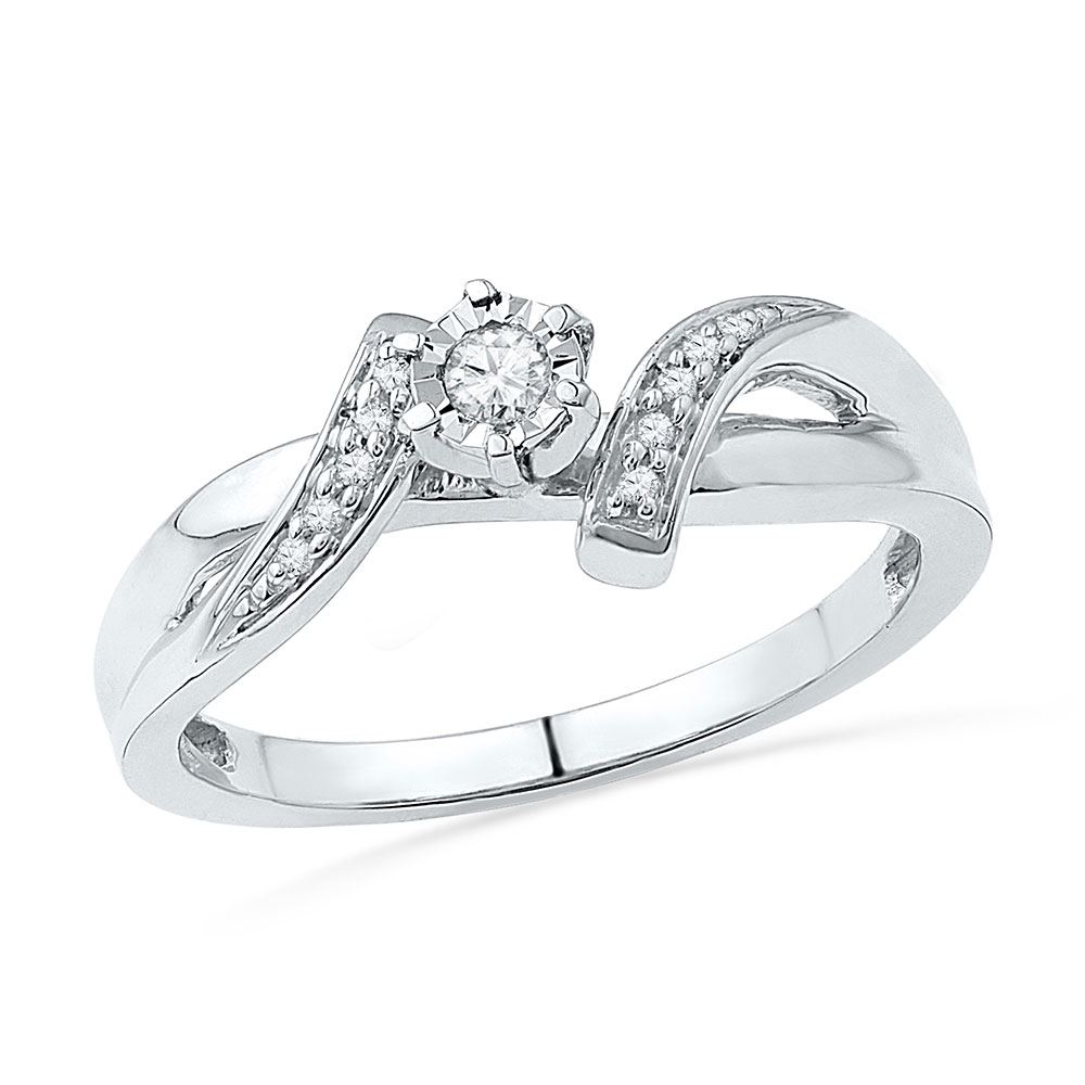 REF-26X5T - 1/10 CTW Womens Round Diamond Solitaire Promise Ring 10kt White Gold - REF-26X5T