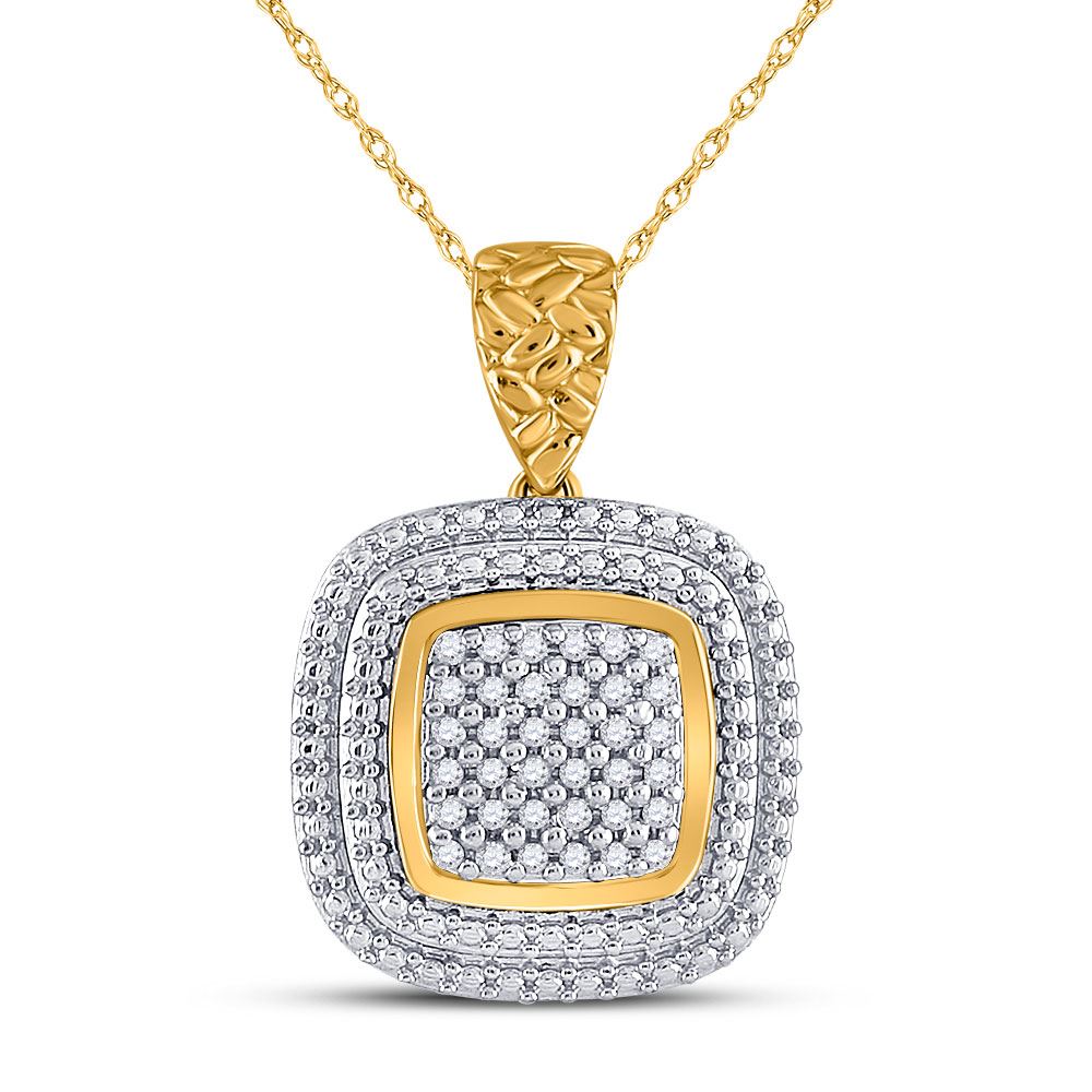 REF-16H4R - 1/10 CTW Womens Round Diamond Square Pendant 10kt Yellow Gold - REF-16H4R