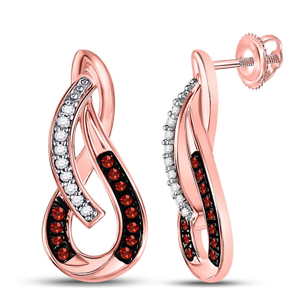 REF-17H6R - 1/10 CTW Womens Round Red Color Enhanced Diamond Fashion Earrings 10kt Rose Gold - REF-17H6R