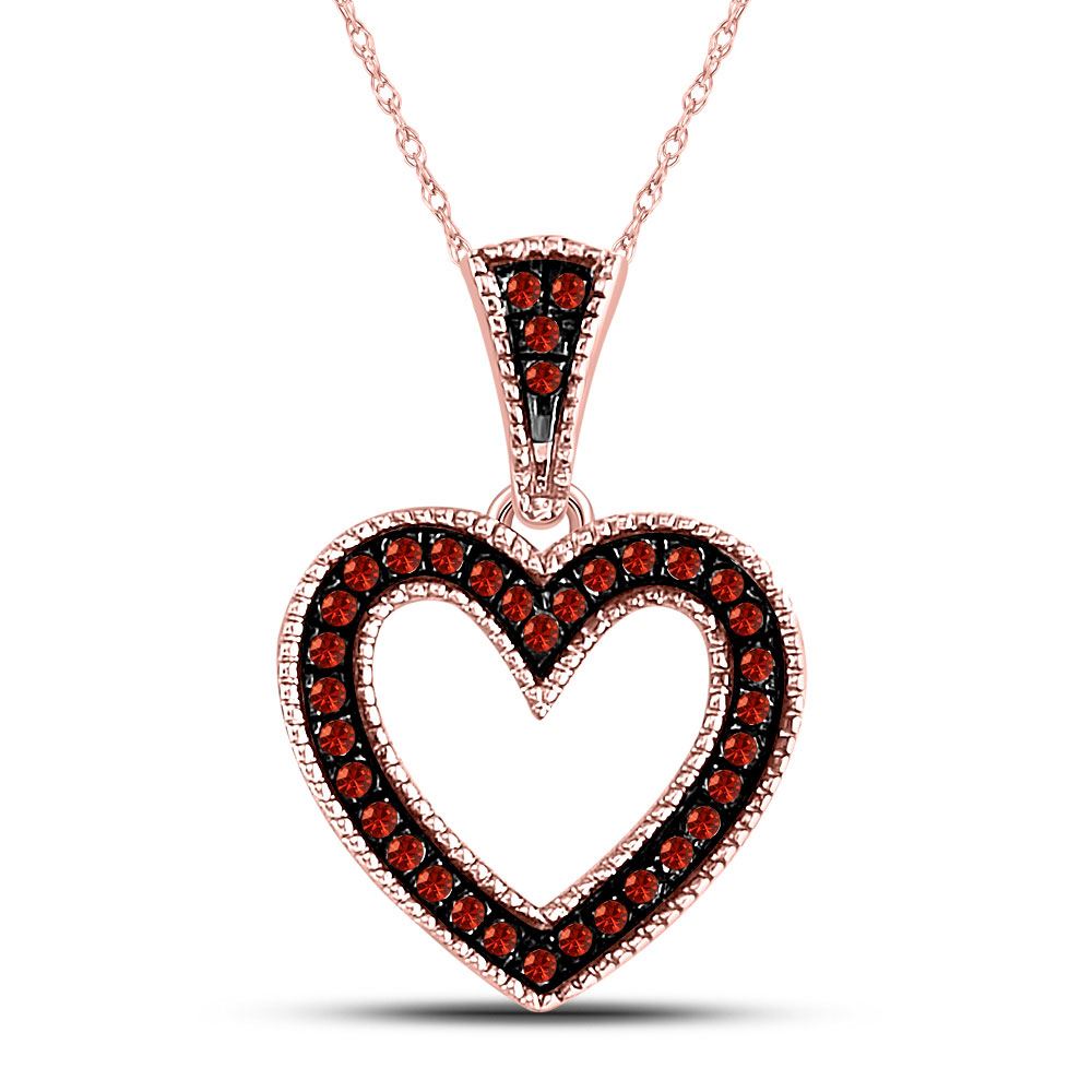 REF-13W5H - 1/10 CTW Womens Round Red Color Enhanced Diamond Heart Pendant 10kt Rose Gold - REF-13W5H
