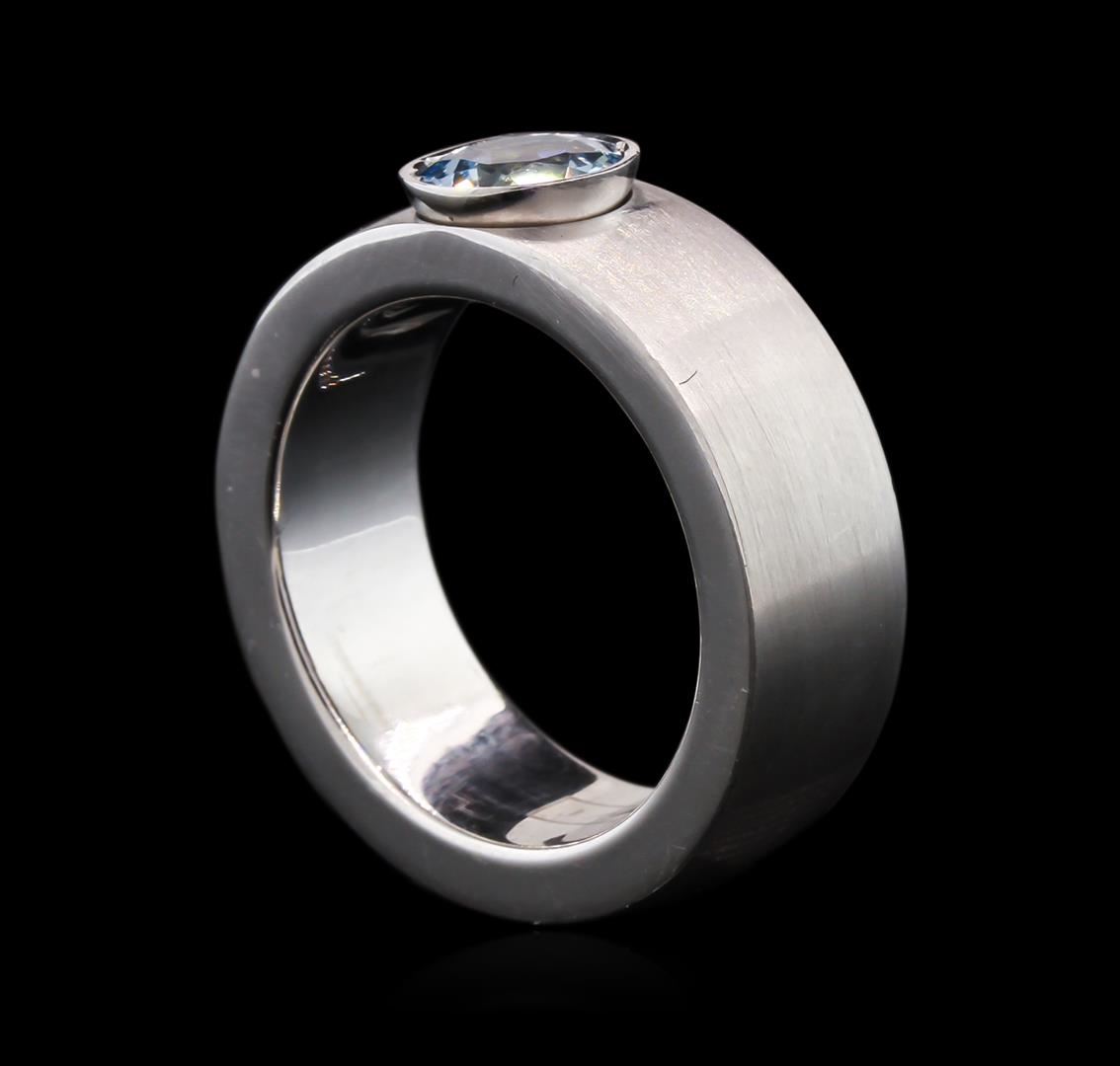 One solitaire ring featuring: 14KT white gold weighing 20.13 grams containing one aquamarine with a total weight of 1.10ct.