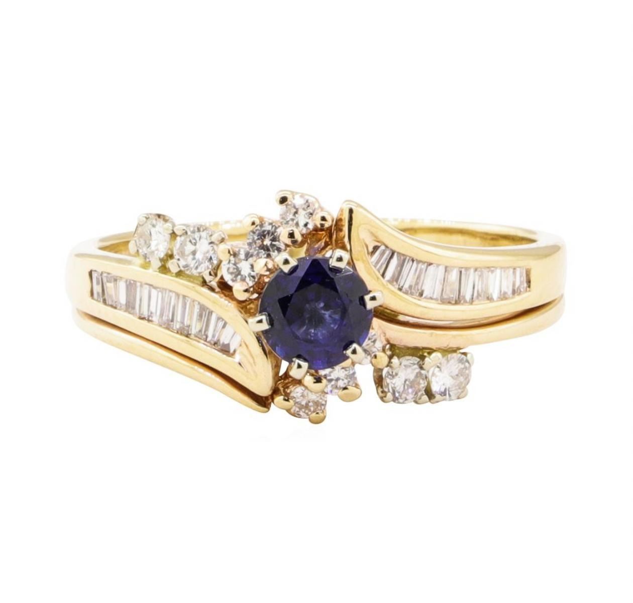 One band soldered to a ring featuring: 14KT yellow gold weighing 5.1 grams containing one sapphire weighing 0.60ct and diamonds weighing 0.50ctw.