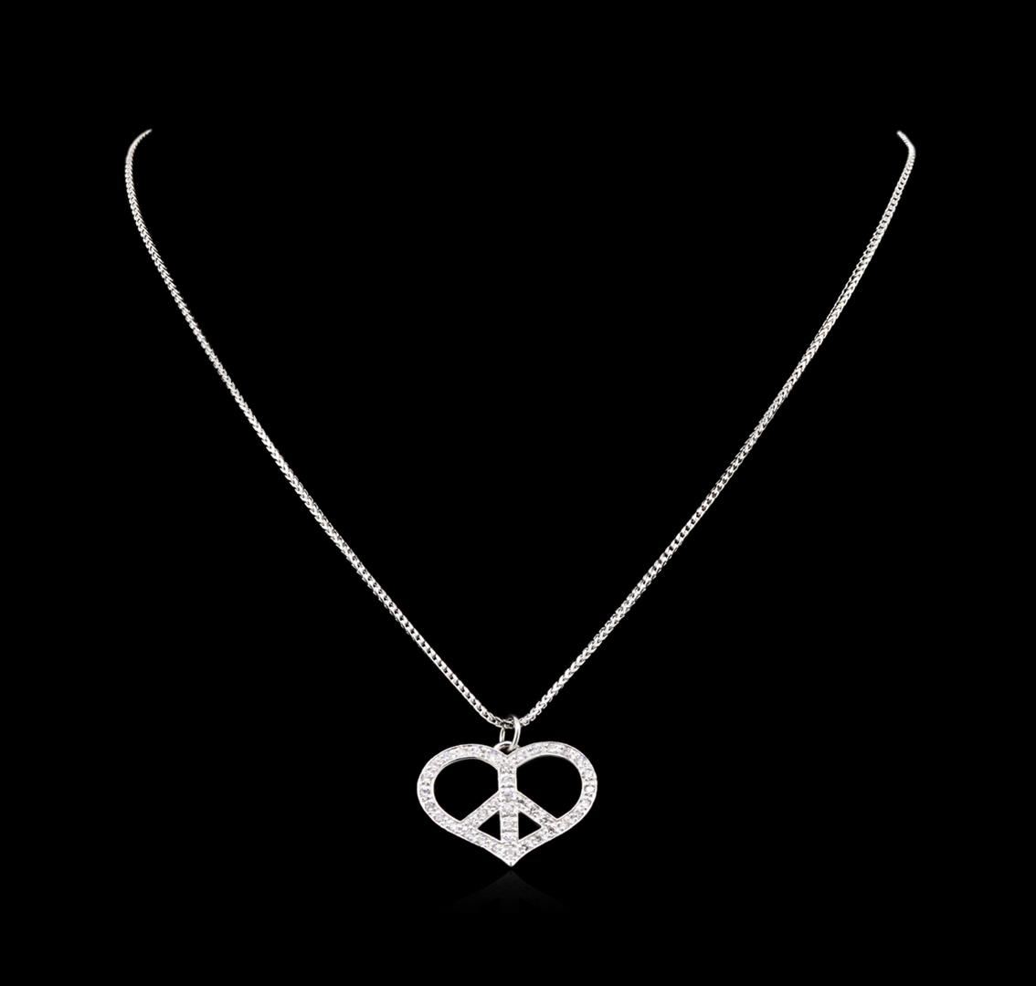 One heart shape pendant with chain featuring: 14KT white gold weighing 6.43 grams containing diamonds with a total weight of 1.10ct.