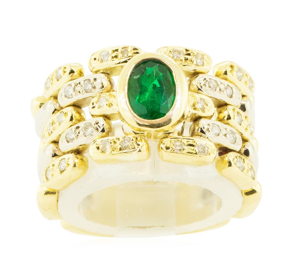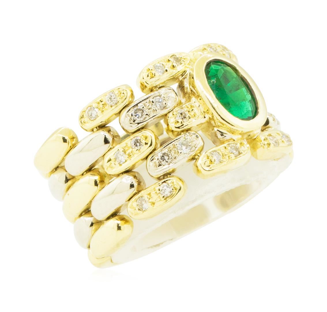 One ring featuring: 14KT yellow and white gold weighing 10.5 grams containing one emerald weighing 0.80ct and diamonds weighing 0.30ctw.