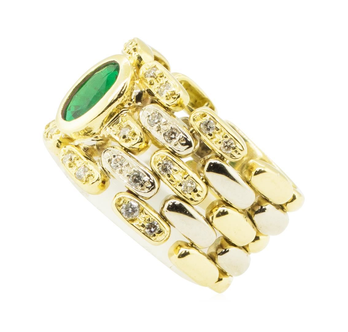One ring featuring: 14KT yellow and white gold weighing 10.5 grams containing one emerald weighing 0.80ct and diamonds weighing 0.30ctw.