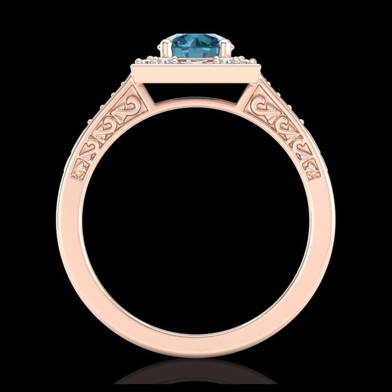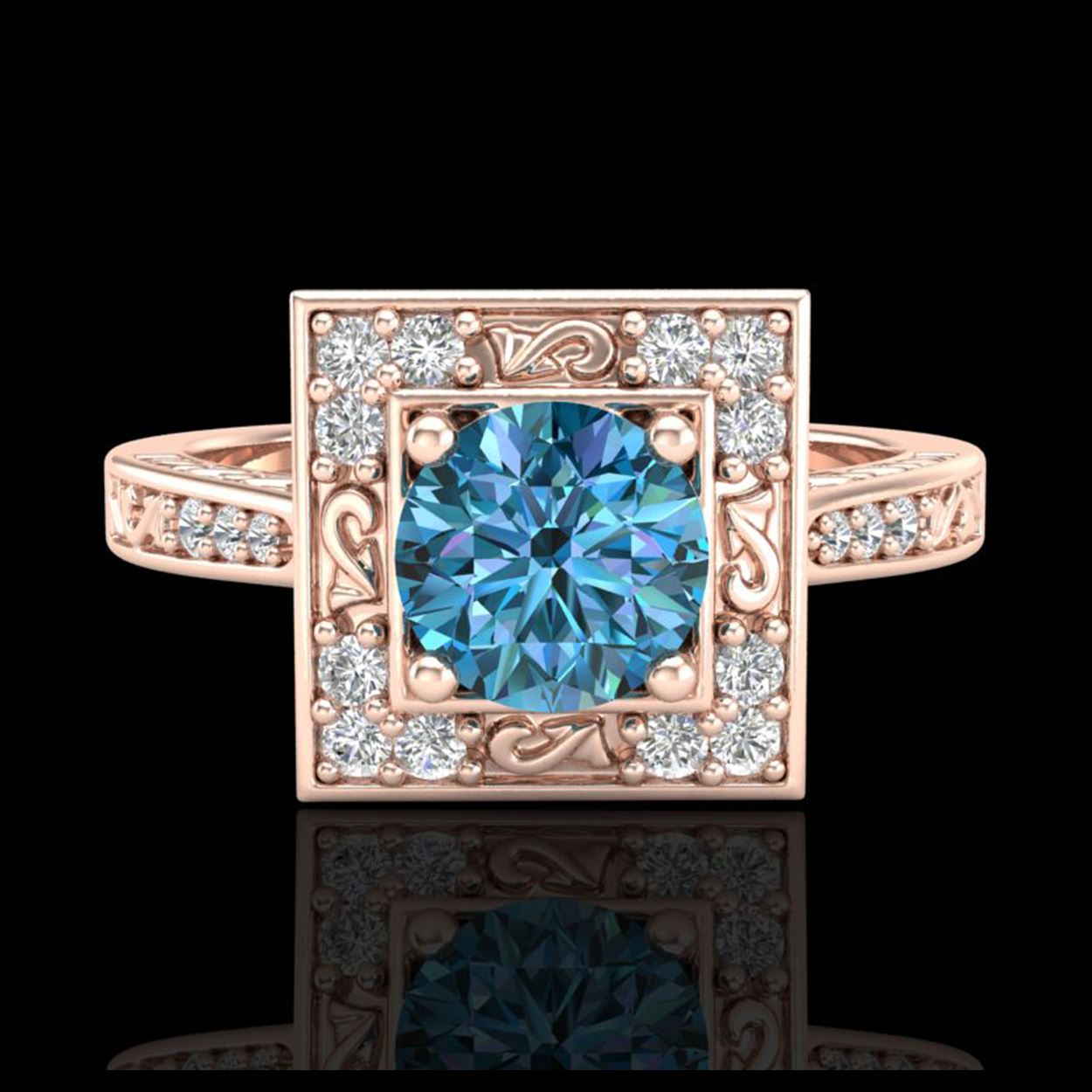 1.10 ctw Intense Blue Diamond Art Deco Ring 18K Rose Gold