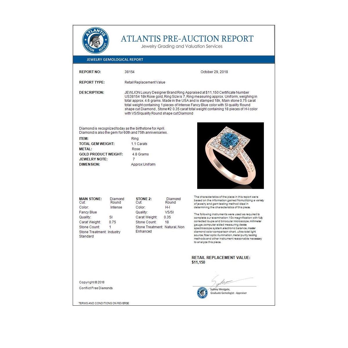 Total Gem weight: 1.1 carats