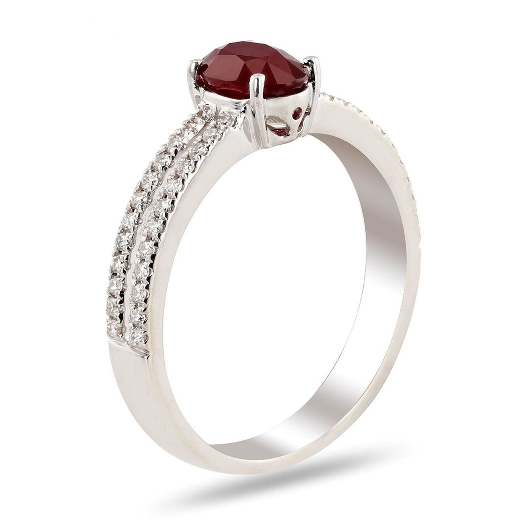 ONE 14K WHITE GOLD LADY'S CUSTOM MADE DIAMOND & RUBY RING. 2.90 GR TW. CONTAINING: 1-MAIN CENTER GEMSTONE(S): IDENTITY : ONE CENTER NATURAL RUBY SET IN 4 PRONGS SETTING. CARAT WEIGHT : 1.10CTW. SHAPE & MEASUREMEMT : OVAL CUT. 6.89 X 4.78 X 3.59 MM. QUALITY : FINE DEEP RED , FINE CUT & CLARITY. NO HEAT. GIA REPORT # 2201366328. 2 - ADJACENT GEMSTONES: IDENTITY : NATURAL DIAMONDS ON HALO. SHAPE : ROUND BRILLIANT CUT. 48 COUNTS . CARAT WEIGHT : 0.24CT. QUALITY : G/H COLOR , SI1 CLARITY . ALL FINE CUFFING ING AND PROPORTIONS. ALL PRONGS SETIINGS STYLE . TOTAL GEMSTONES WEIGHT : 1.34CTW TW.