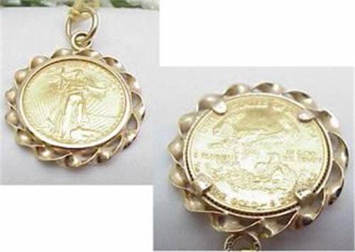 1/10 oz Gold American Eagle coin in a 14kt yellow gold bezel