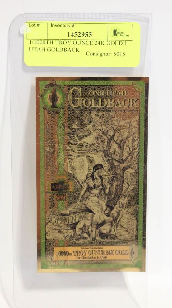 1/1000TH TROY OUNCE 24K GOLD 1 UTAH GOLDBACK