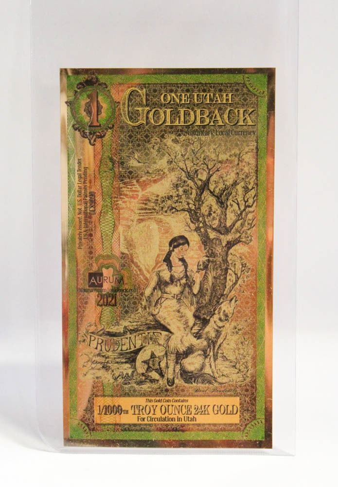 1/1000TH TROY OUNCE 24K GOLD UTAH 1 GOLDBACK NOTE