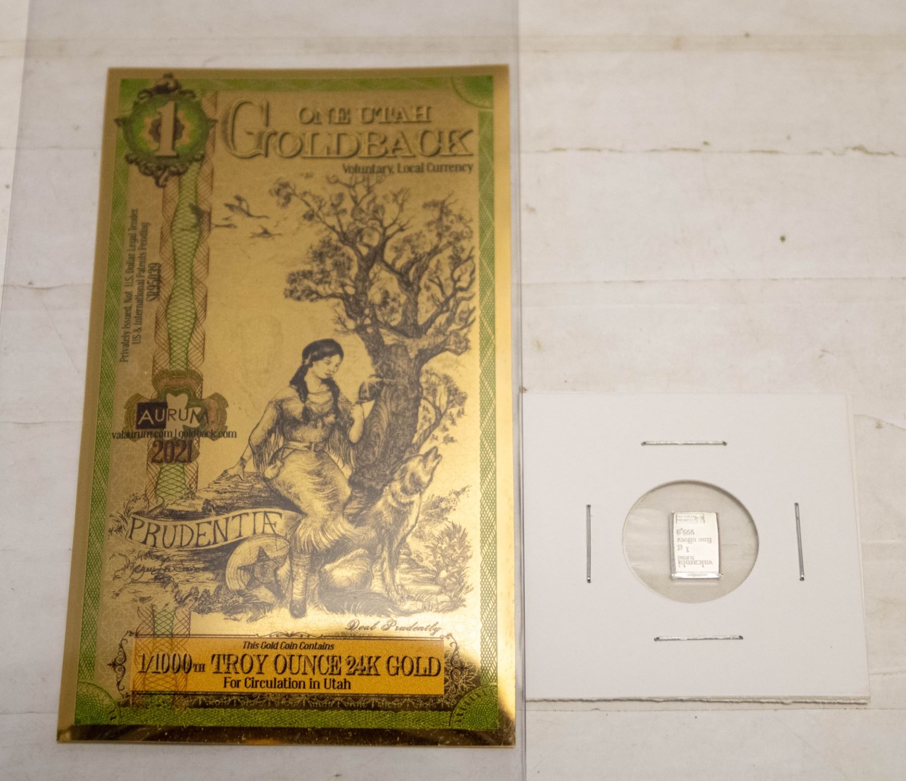 1/1000 TROY OUNCE 24K GOLD UTAH GOLDBACK NOTE AND A 1g VALCAMBI SUISSE .999 SILVER BAR