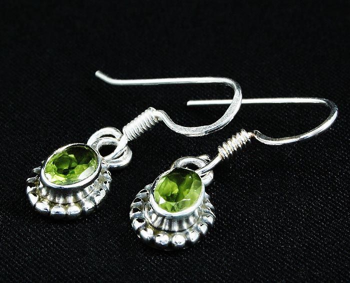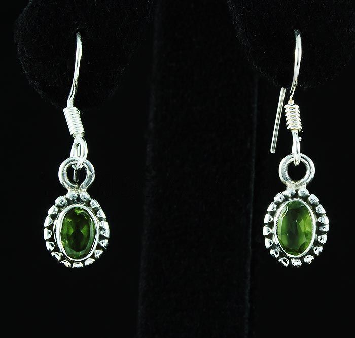 1.10CT Peridot Antique Design .925 HookEarring 2.03g **|**|** 1.04" Long Sterling Silver Dangling Hook Earring with a Peridot Faceted Gem Measuring 6x4mm Oval ; MSRP: $300