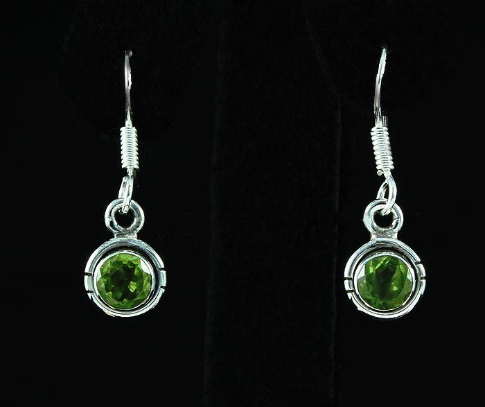 1.10CT Peridot Bezel Design 0.925 Hook Earring 2.17g **|**|** 1.04" Long Sterling Silver Dangling Hook Earring with a Peridot Faceted Gem Measuring 5mm Round ; MSRP: $100