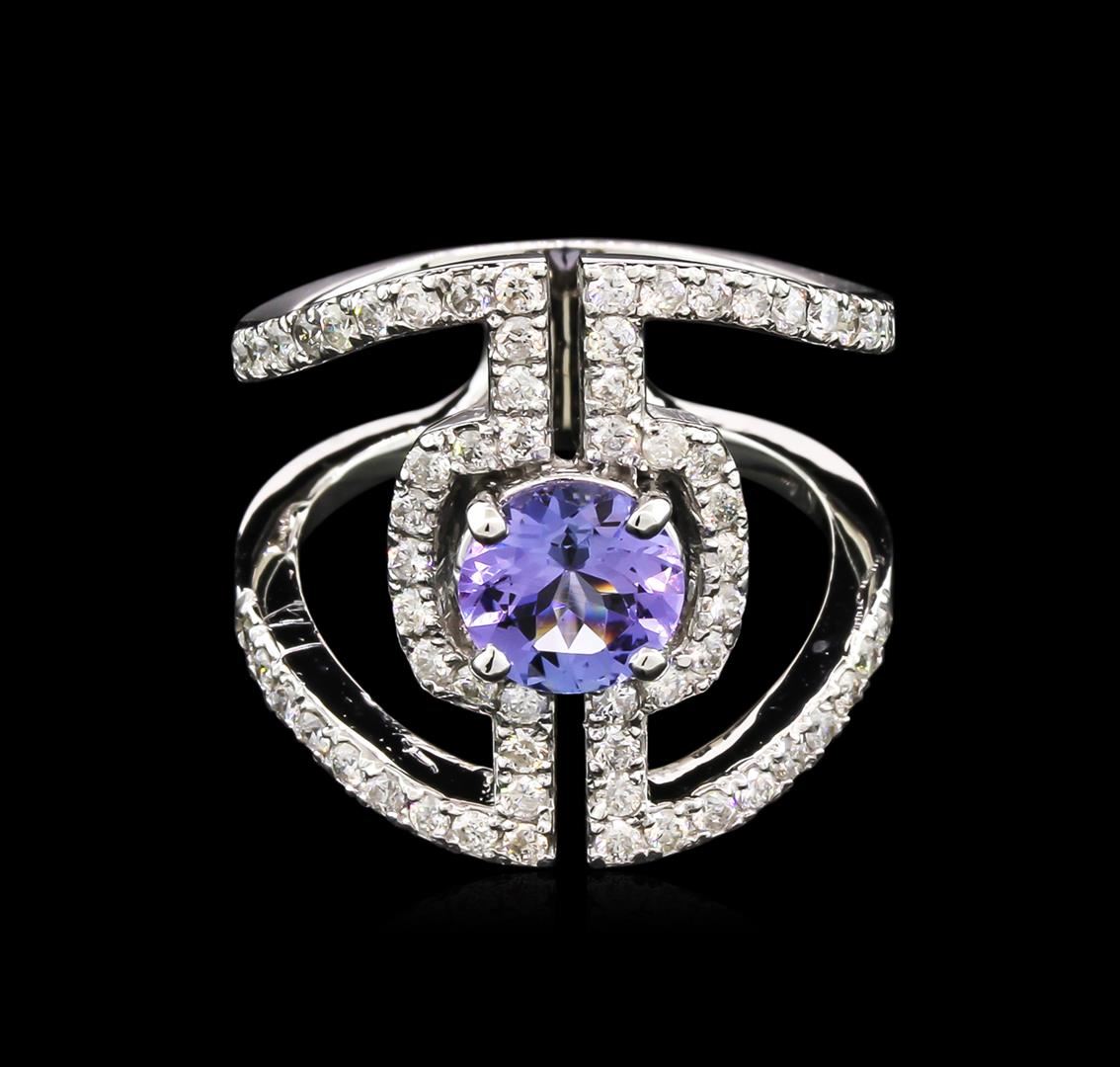 One ring featuring: 14KT white gold weighing 6.72 grams containing one tanzanite with a total weight of 1.10ct and 62 diamonds with a total weight of 0.75ct.