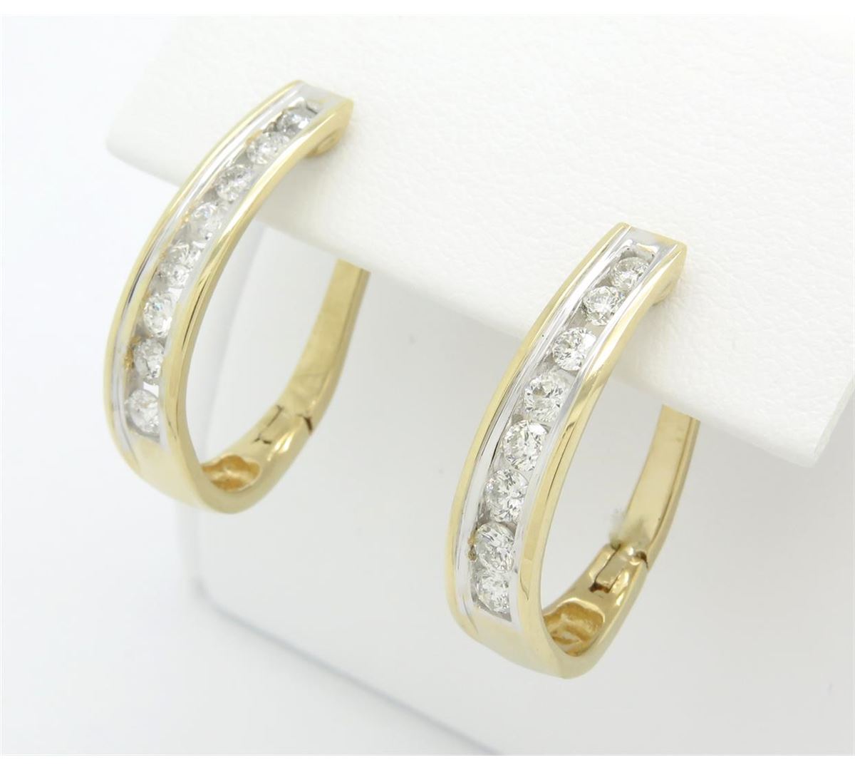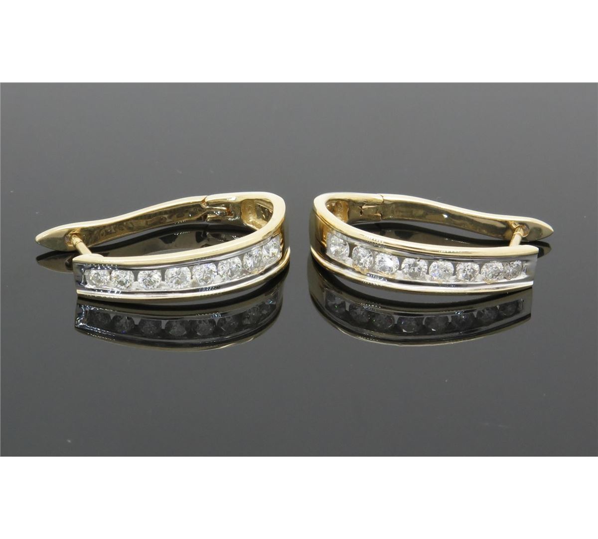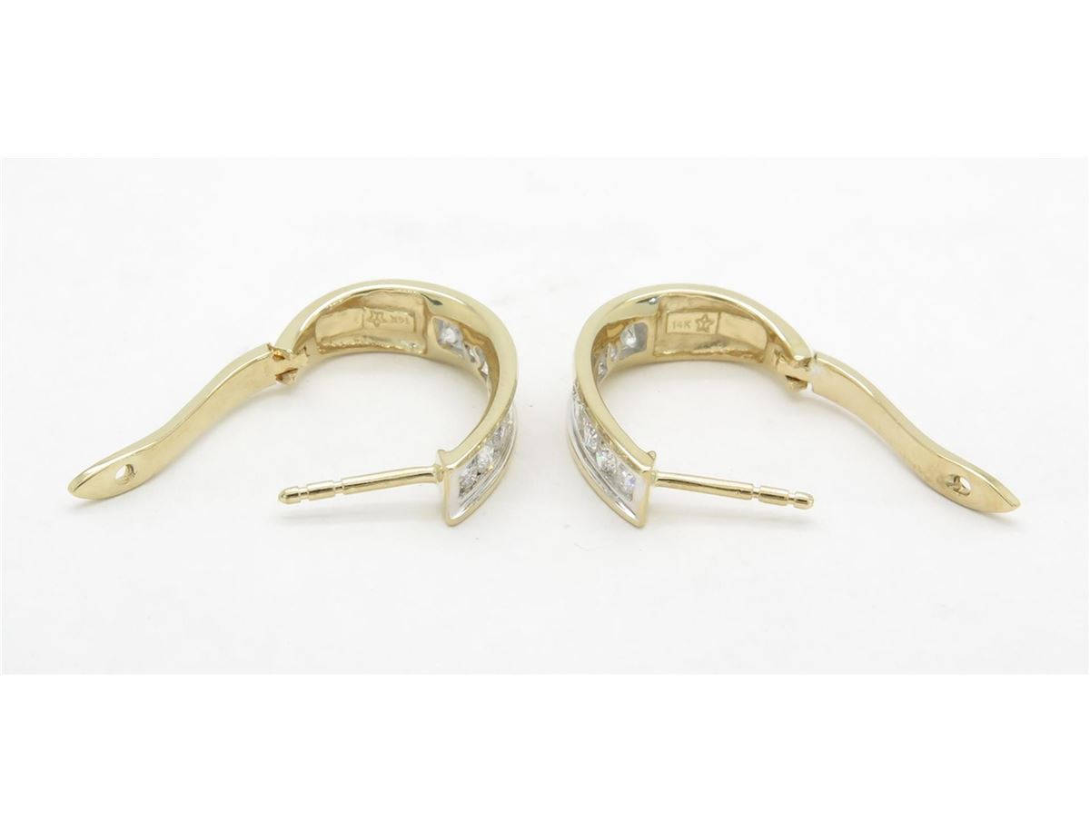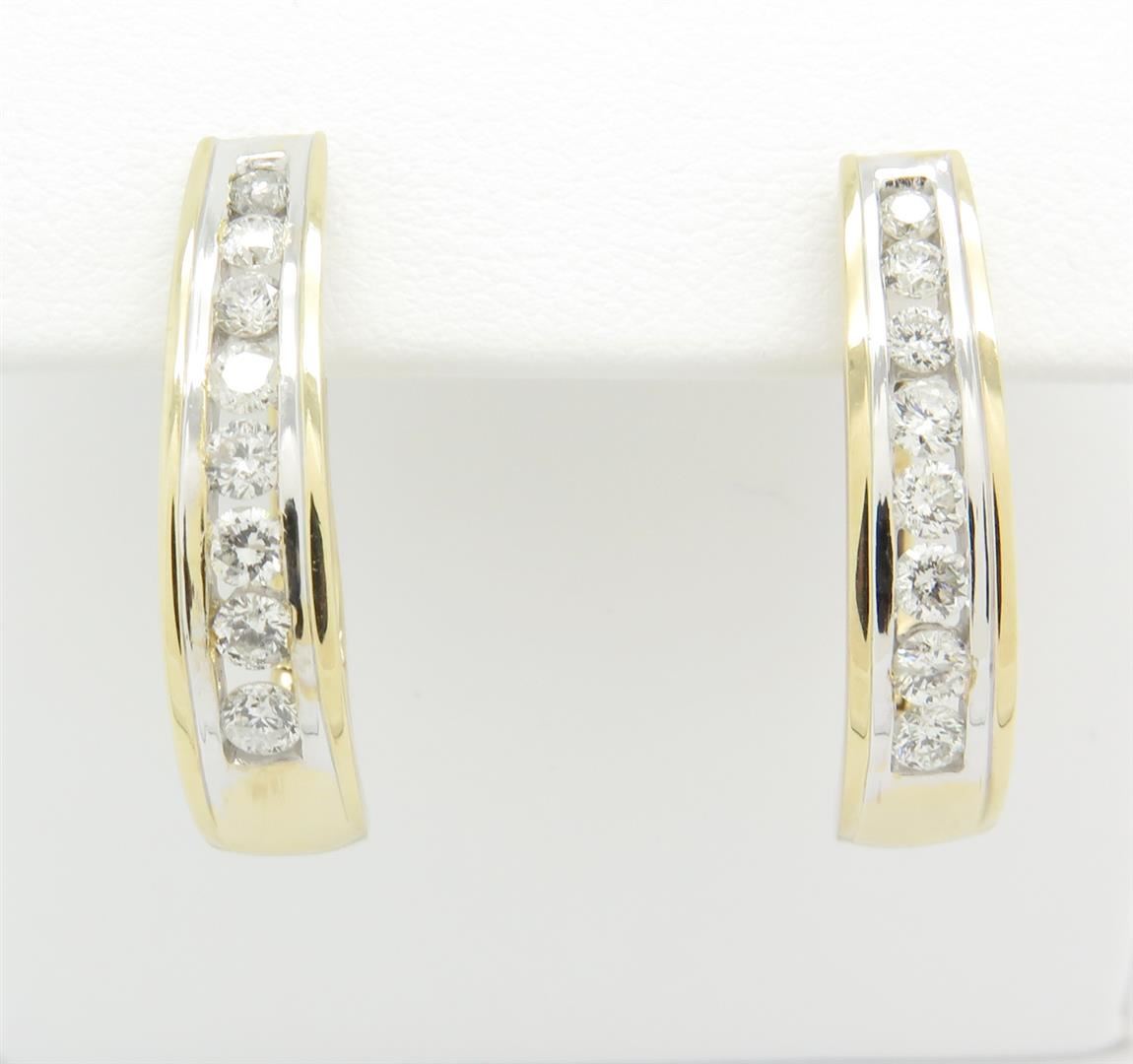 Two tested 14K yellow gold diamond earrings. Containing: 16 Round Brilliant Cut Diamonds. Clarity: I-SI, Color: G-H. Approximate total diamond weight: 1.10CTW. Diamonds are graded in the mounting, unless otherwise stated. Weight of earrings: 6.0 grams.