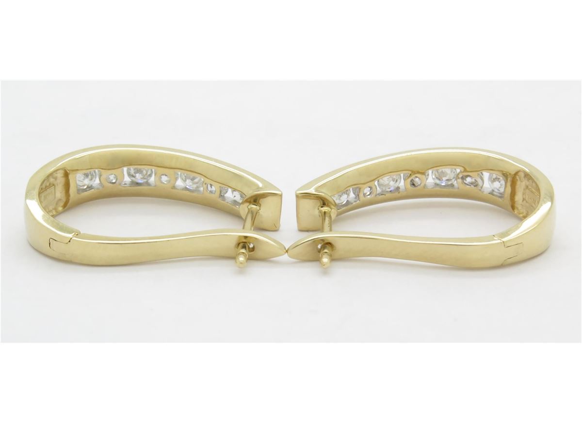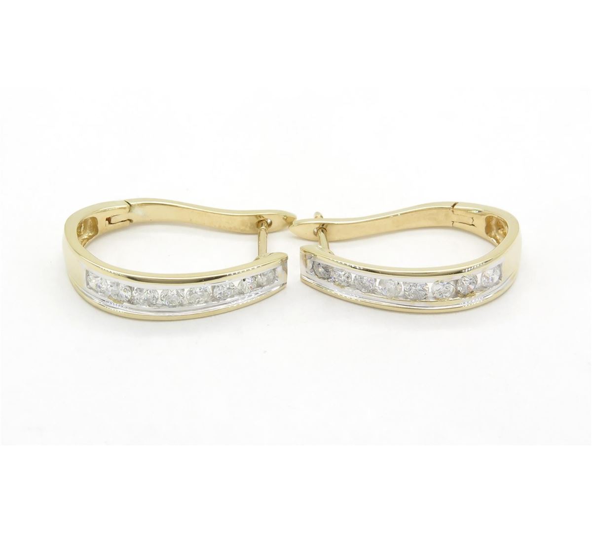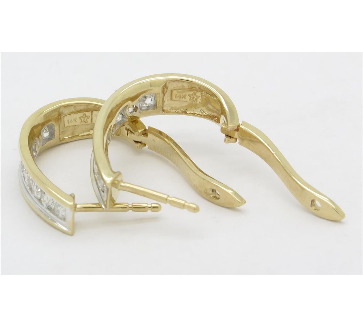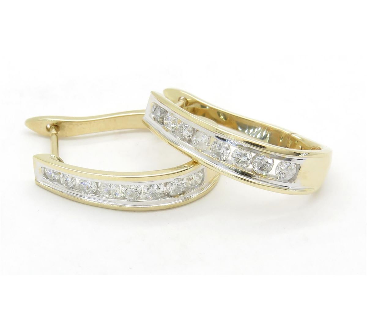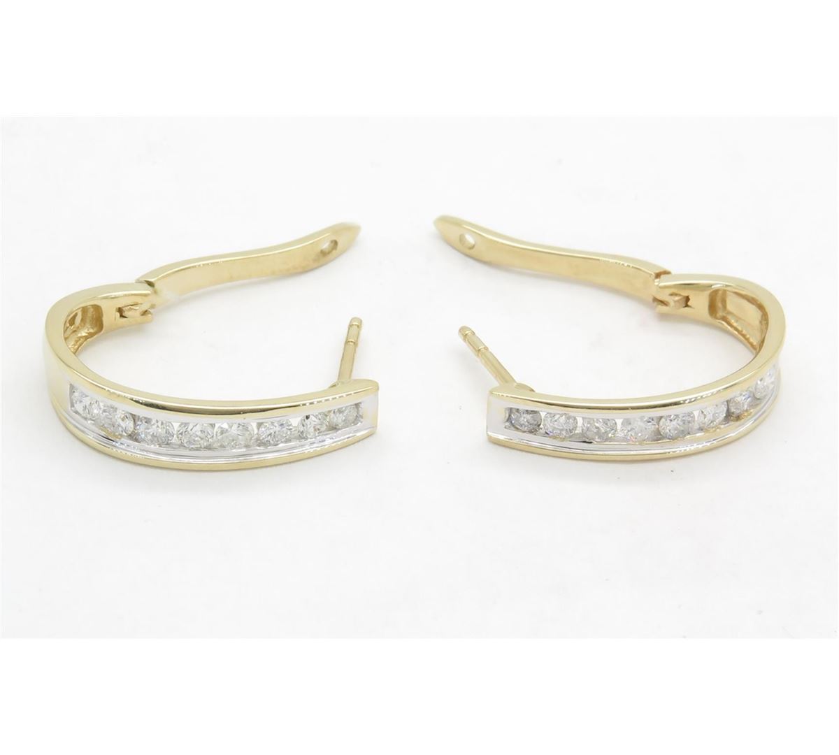 Two tested 14K yellow gold diamond earrings. Containing: 16 Round Brilliant Cut Diamonds. Clarity: I-SI, Color: G-H. Approximate total diamond weight: 1.10CTW. Diamonds are graded in the mounting, unless otherwise stated. Weight of earrings: 6.0 grams.