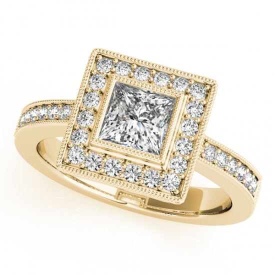 REF-209H3A -27191 ---- 1.11 CTW Certified VS/SI Princess Diamond Solitaire Halo Ring 18K Yellow Gold ---- Luxury Designer Brand Ring Appraised at $10,350 Certificate Number US27191 18k Yellow gold, Ring Size is 7, Ring measuring approx. Uniform, weighing in total approx. 5.8 grams. Made in the USA and is stamped 18k, Main stone 0.75 carat total weight containing 1 pieces of H-J color with VS/SI quality Princess shape cut Diamond , Stone #2 0.36 carat total weight containing 32 pieces of H-I color with VS/SI quality Round shape cut Diamond