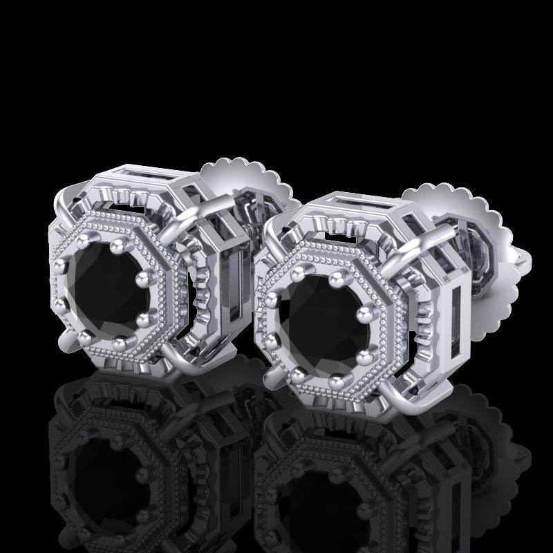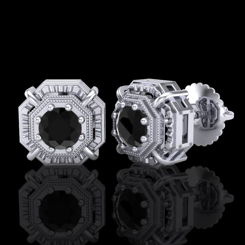 1.11 CTW Fancy Black Diamond Solitaire Art Deco Stud Earrings 18K White Gold ---- Luxury Designer Brand Earring Appraised Retail Price at $6,600 ---- SKU Number US37450 18k White gold Earring Size is Larger, Earring measuring approx. Uniform, weighing in total approx. 9 grams. Made in the USA and is stamped 18k, Main stone 1.11 carat total weight containing 2 pieces of Black Opaque color with VS quality Round shape cut Diamond , Stone #2 carat total weight containing pieces of color with quality shape cut