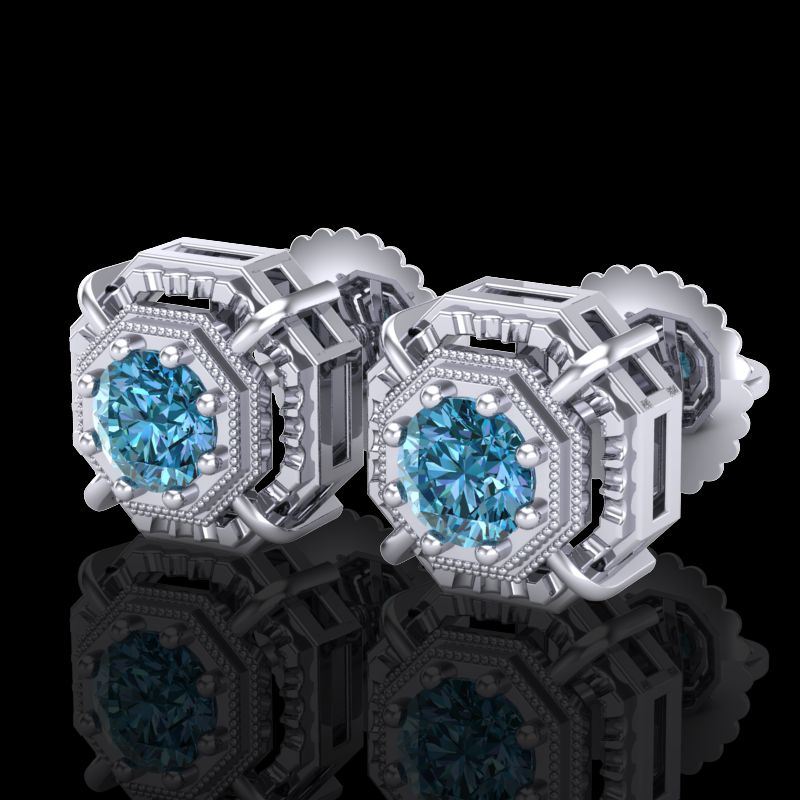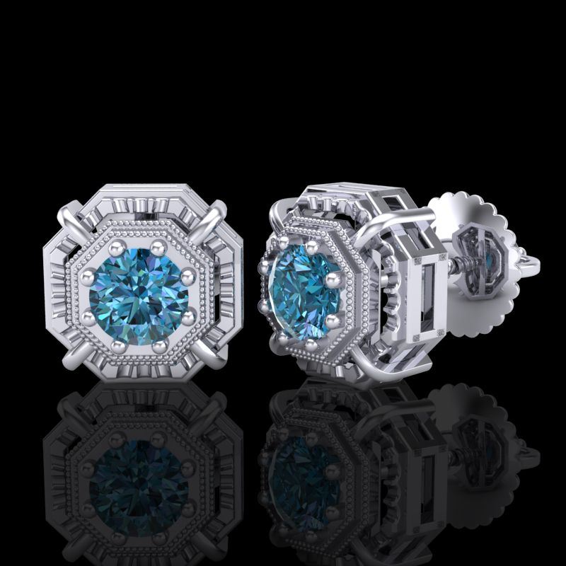 REF-158W2F -37453 ---- 1.11 CTW Fancy Intense Blue Diamond Art Deco Stud Earrings 18K White Gold ---- Luxury Designer Brand Earring Appraised at $9,550 Certificate Number US37453 18k White gold, Earring Size is Larger, Earring measuring approx. Uniform, weighing in total approx. 6 grams. Made in the USA and is stamped 18k, Main stone 1.11 carat total weight containing 2 pieces of Intense Fancy Blue color with SI quality Round shape cut Diamond , Stone #2 carat total weight containing pieces of color with quality shape cut