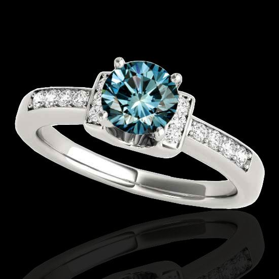 1.11 CTW SI Certified Fancy Blue Diamond Solitaire Ring Two Tone 10K White Gold ---- Luxury Designer Brand Ring Appraised Retail Price at $9,450 ---- SKU Number US34833 10k White gold Ring Size is 7, Ring measuring approx. Uniform, weighing in total approx. 3.9 grams. Made in the USA and is stamped 10k, Main stone 1.00 carat total weight containing 1 pieces of Intense Fancy Blue color with SI quality Round shape cut Diamond , Stone #2 0.11 carat total weight containing 14 pieces of H-I color with VS/SI quality Round shape cut
