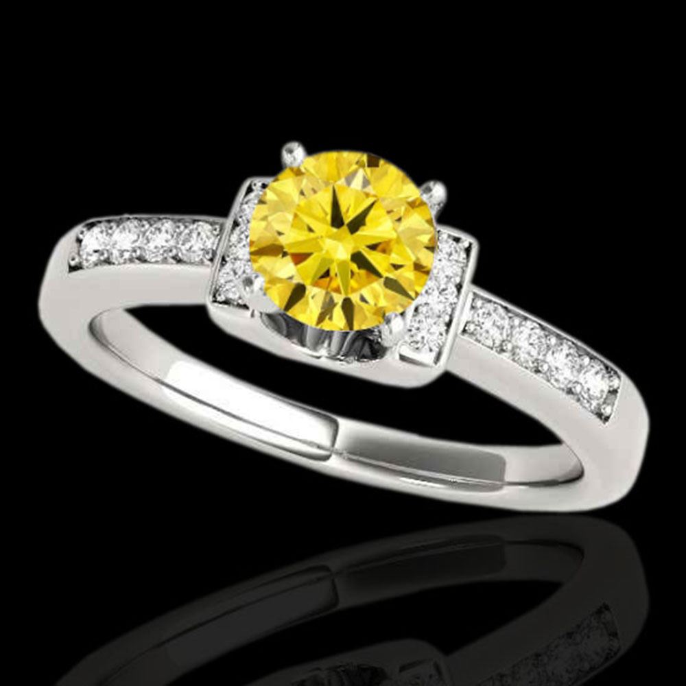 REF-190X9A - SKU: 34834 ---- 1.11 ctw Certified SI Fancy Yellow Diamond Solitaire Ring 10k White Gold