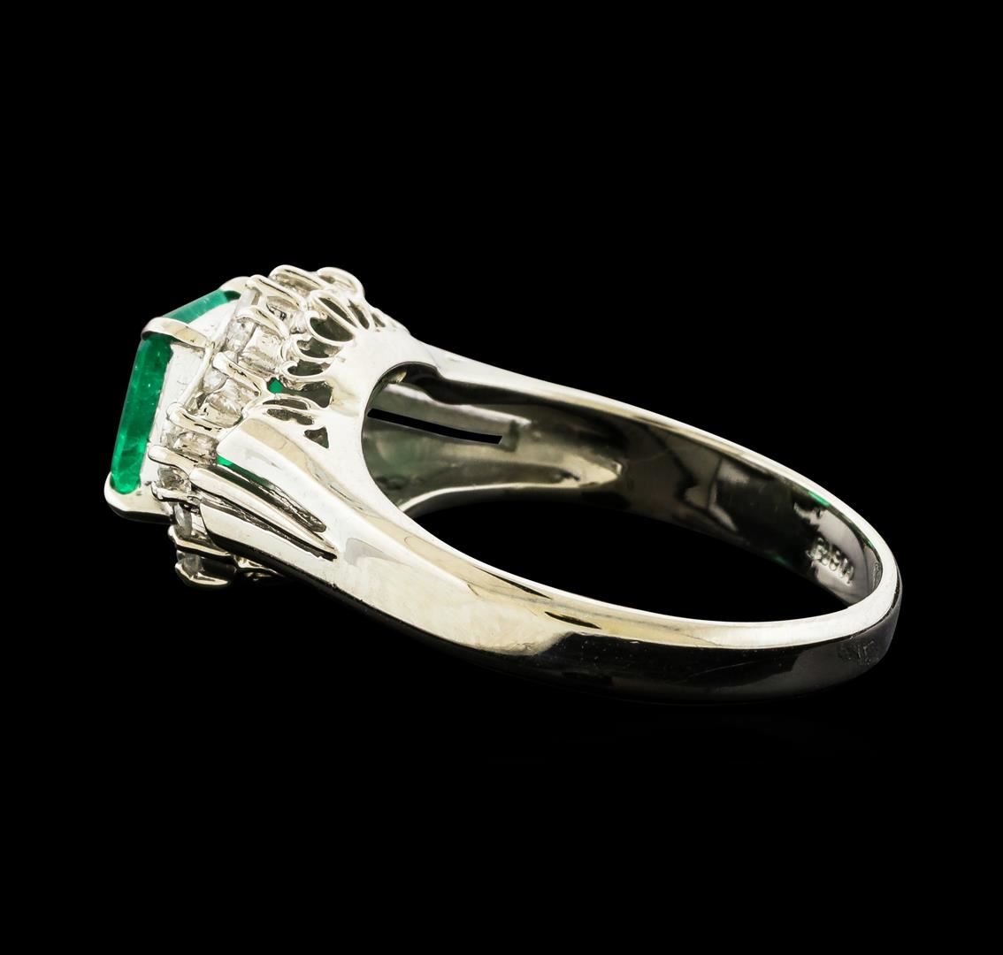One ring featuring: Platinum containing Emerald with a total weight of 1.11ct and Diamonds with a total weight of 0.34ct. Total Weight of Ring: 6.2 grams.