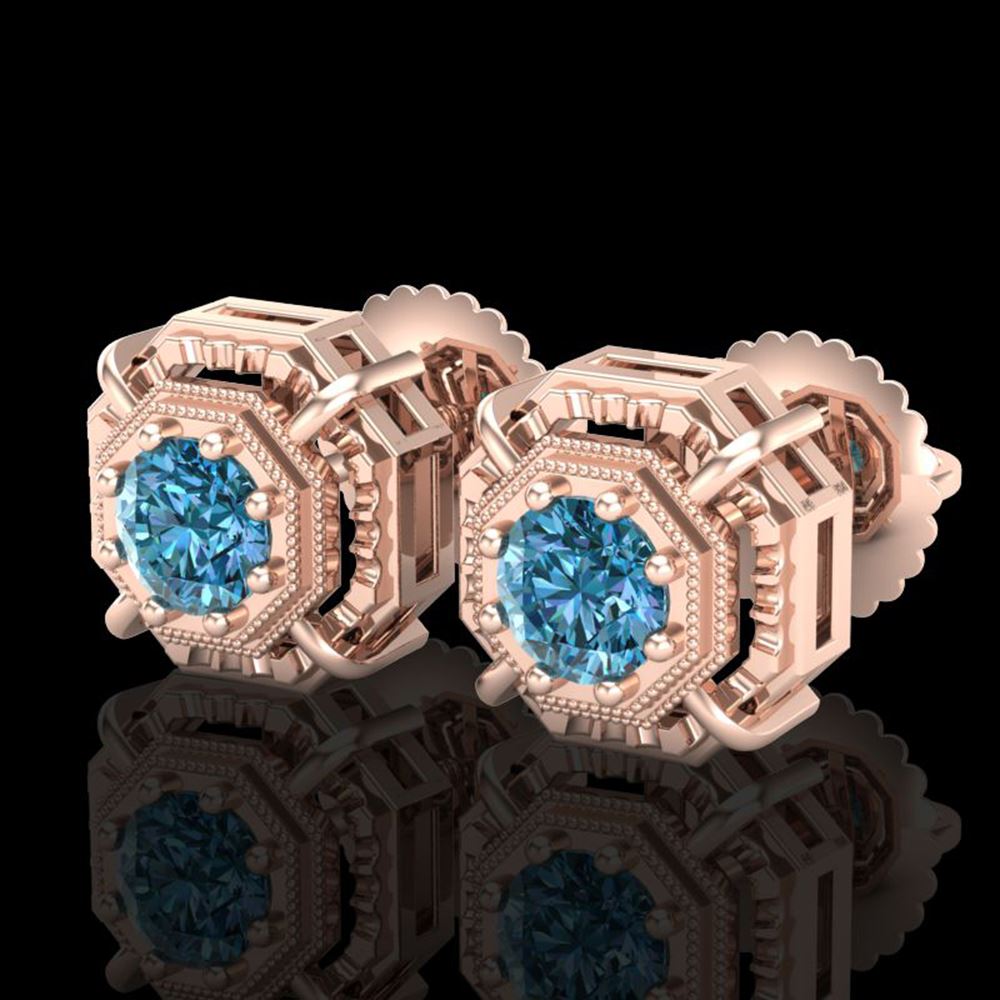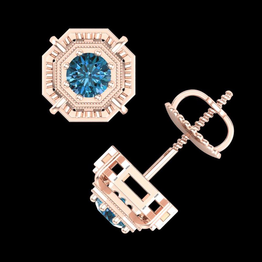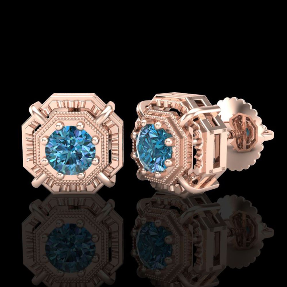 REF-158H2R - SKU: 37454 ---- 1.11 ctw Fancy Intense Blue Diamond Art Deco Earrings 18k Rose Gold