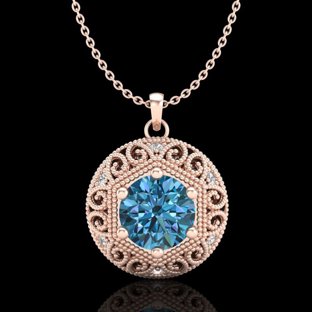 REF-161M8G - SKU: 37566 ---- 1.11 ctw Fancy Intense Blue Diamond Art Deco Necklace 18k Rose Gold