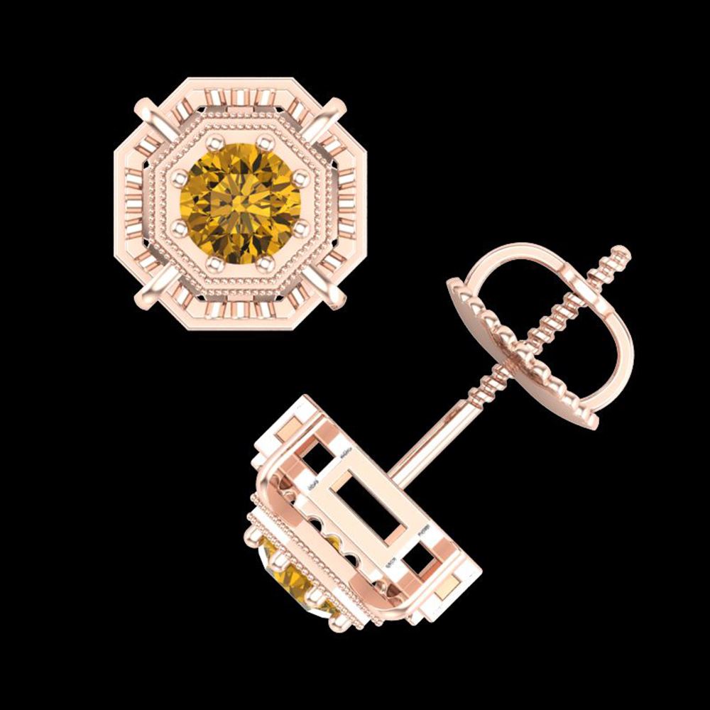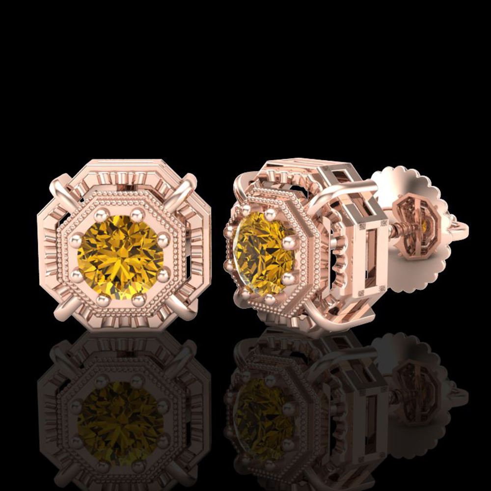 REF-158X2A - SKU: 37456 ---- 1.11 ctw Intense Fancy Yellow Diamond Art Deco Earrings 18k Rose Gold