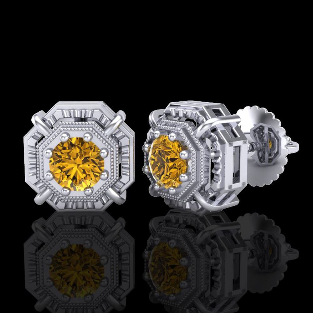REF-158K2Y - SKU: 37455 ---- 1.11 ctw Intense Fancy Yellow Diamond Art Deco Earrings 18k White Gold