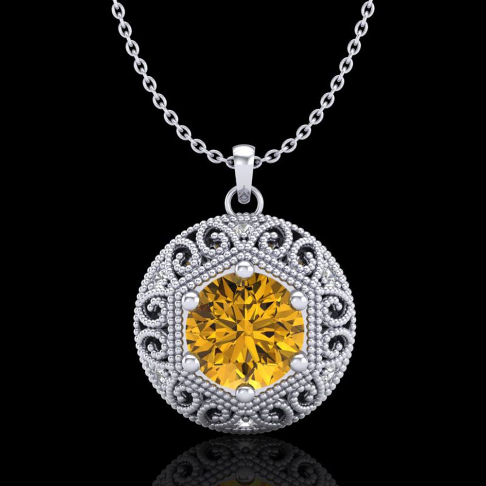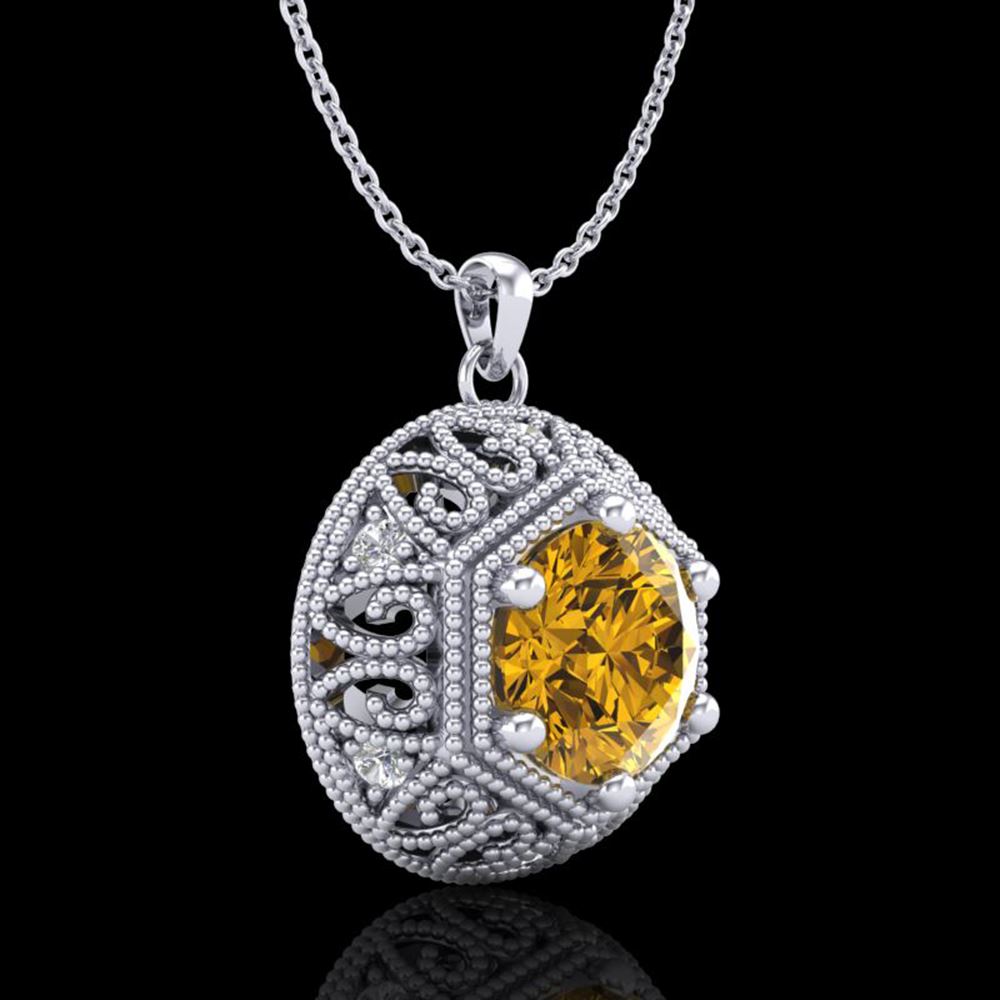 REF-236H4R - SKU: 37567 ---- 1.11 ctw Intense Fancy Yellow Diamond Art Deco Necklace 18k White Gold