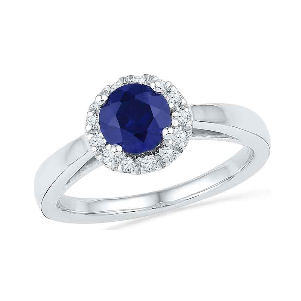 REF-25M4H- SKU: GD100277 ---- 1.12 CTW Created Blue Sapphire Solitaire Ring 10KT White Gold