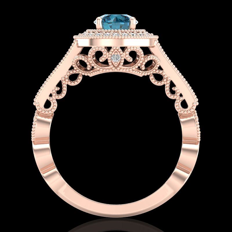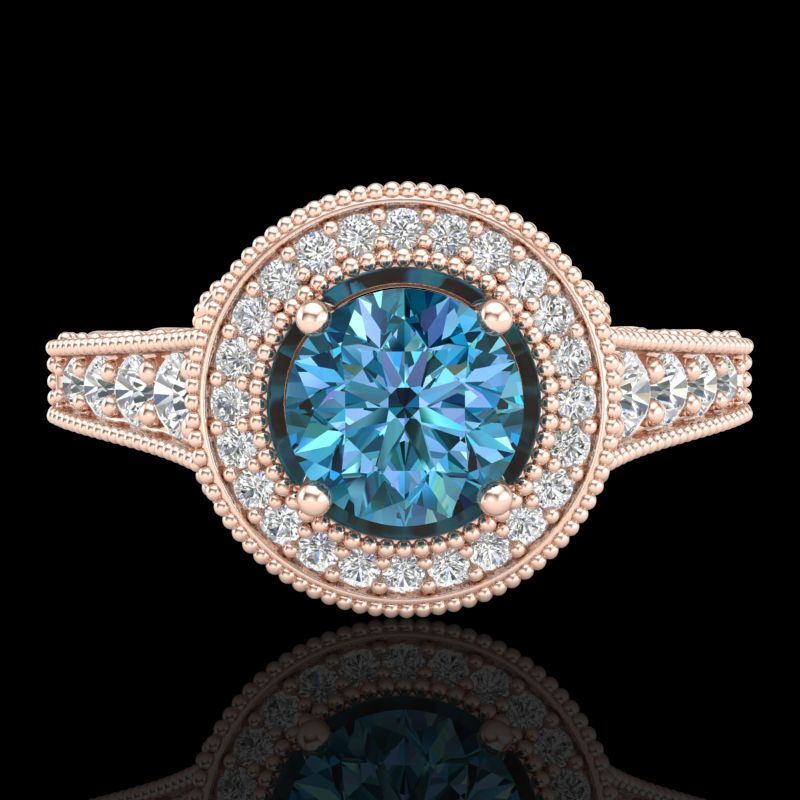 37692 - REF-167N3A ---- 1.12 CTW Fancy Intense Blue Diamond Solitaire Art Deco Ring 18K Rose Gold ---- Luxury Designer Brand Ring Appraised at $10,100 Certificate Number US37692 18k Rose gold, Ring Size is 7, Ring measuring approx. Uniform, weighing in total approx. 11 grams. Made in the USA and is stamped 18k, Main stone 0.77 carat total weight containing 1 pieces of Intense Fancy Blue color with SI quality Round shape cut Diamond , Stone #2 0.35 carat total weight containing 18 pieces of H-I color with VS/SI quality Round shape cut Diamond