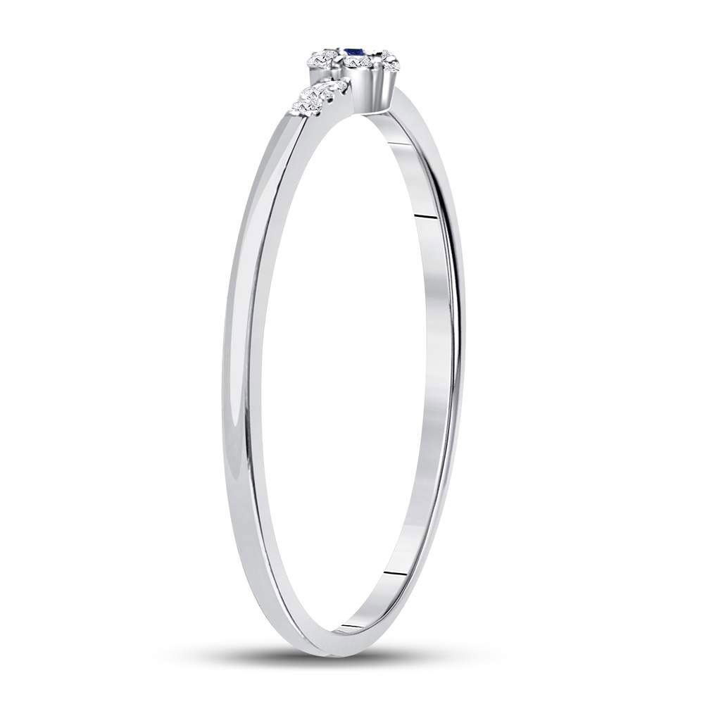10kt White Gold Womens Round Blue Sapphire Diamond Stackable Band Ring 1/12 Cttw