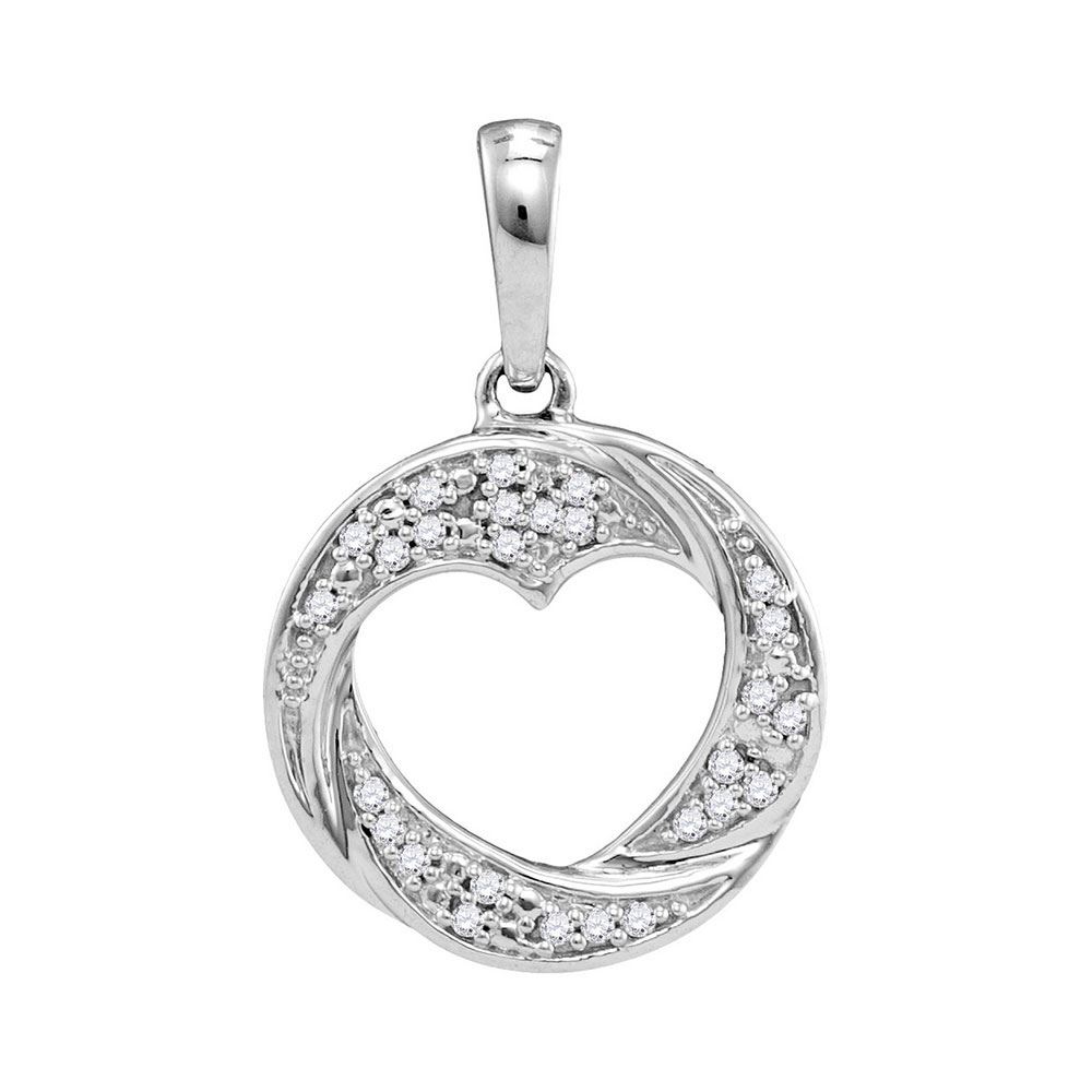 10kt White Gold Womens Round Diamond Circle Heart Cutout Pendant 1/12 Cttw