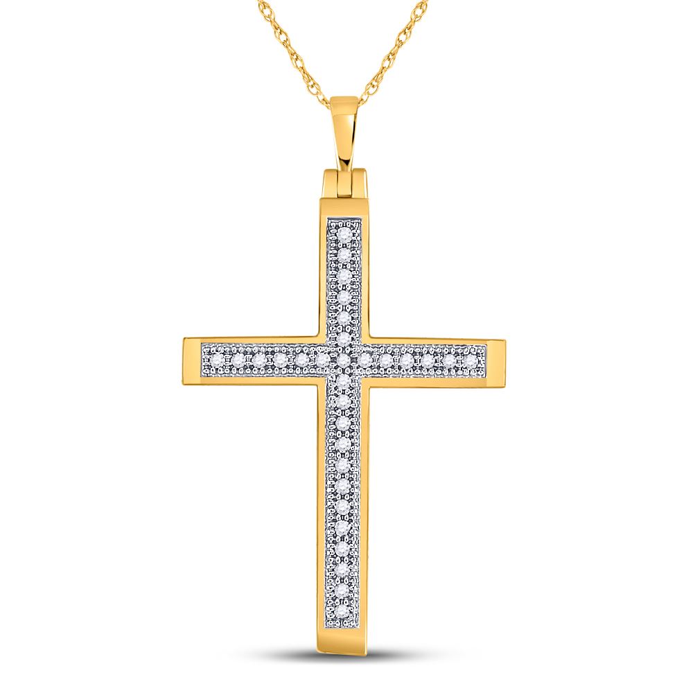 10kt Yellow Gold Womens Round Diamond Cross Religious Pendant 1/12 Cttw