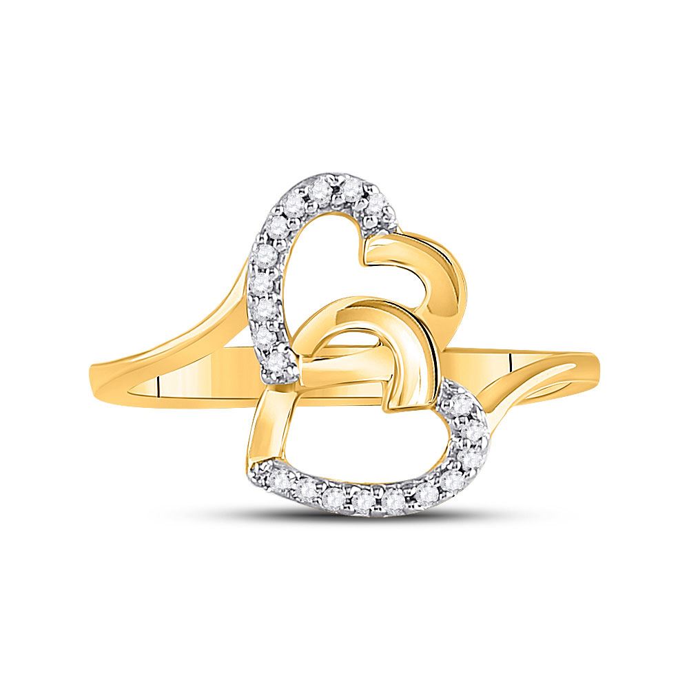 10kt Yellow Gold Womens Round Diamond Double Heart Ring 1/12 Cttw