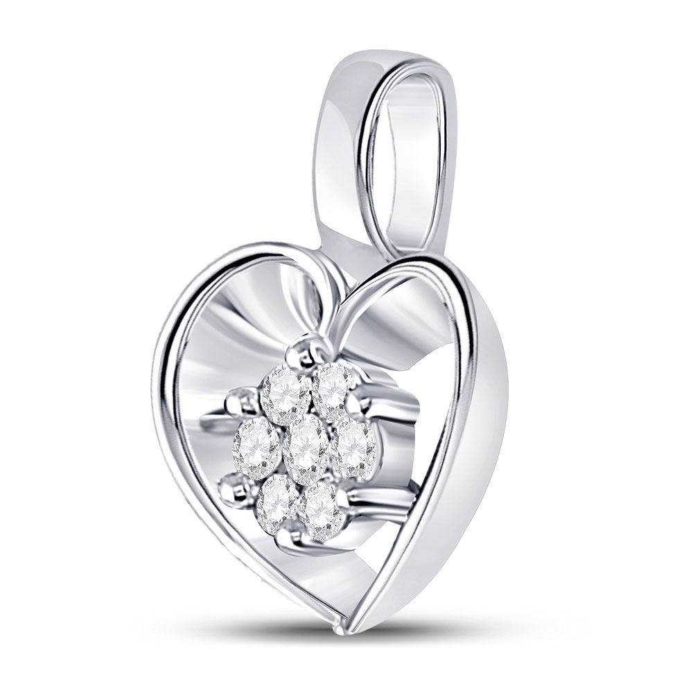 10kt White Gold Womens Round Diamond Small Heart Cluster Pendant 1/12 Cttw