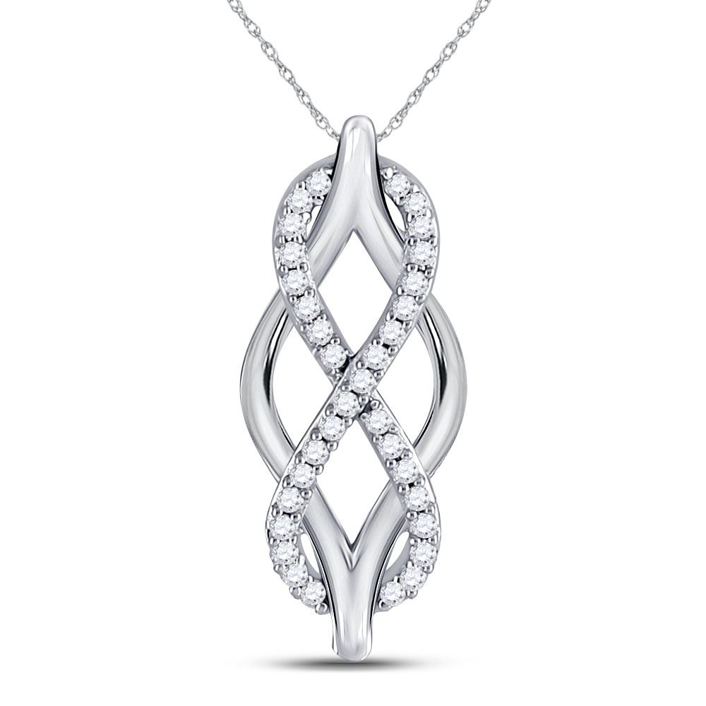 10kt White Gold Womens Round Diamond Vertical Infinity Pendant 1/12 Cttw