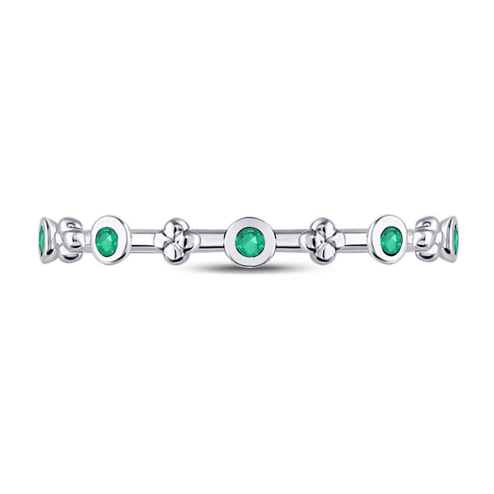10kt White Gold Womens Round Emerald Dot Flower Stackable Band Ring 1/12 Cttw
