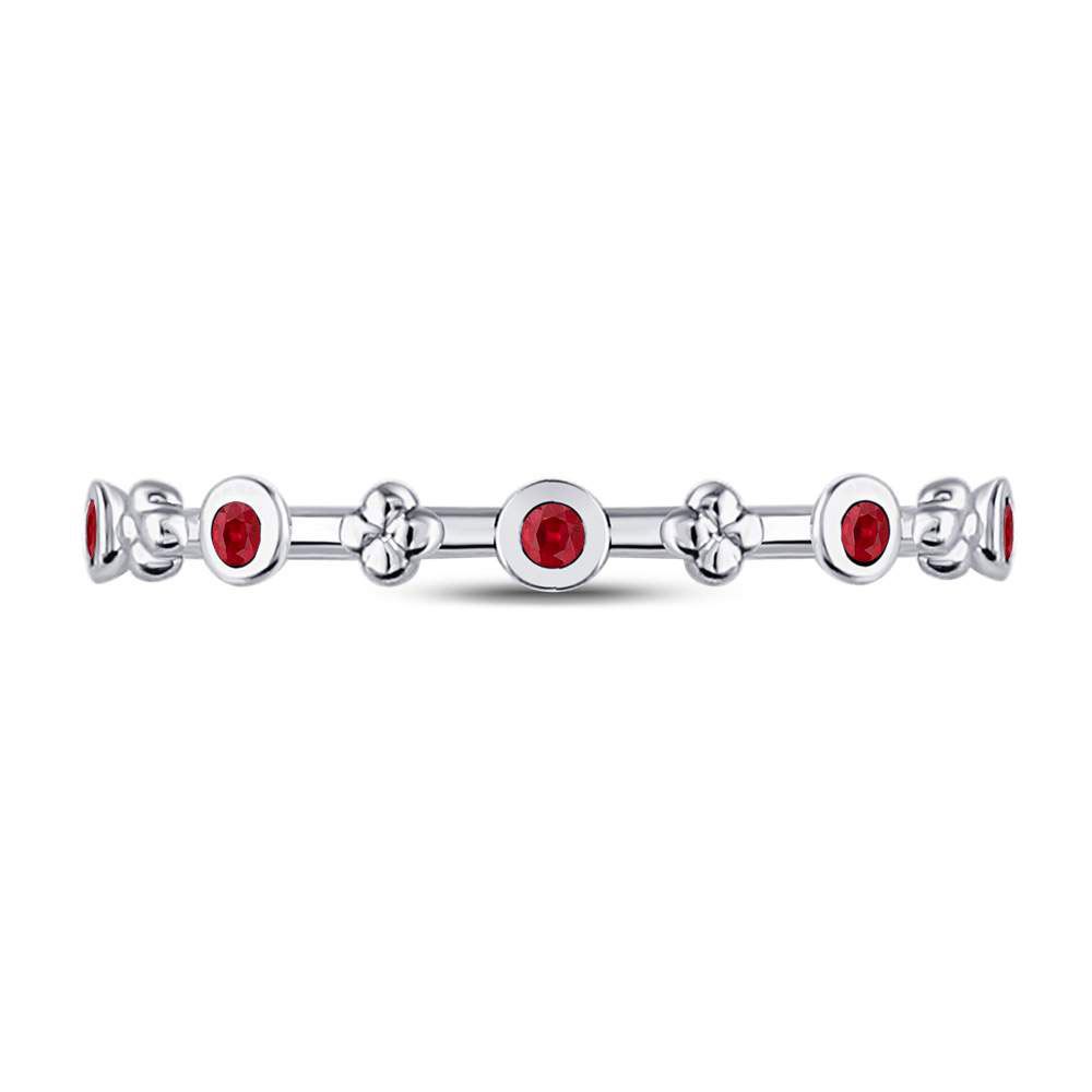 10kt White Gold Womens Round Ruby Dot Flower Stackable Band Ring 1/12 Cttw