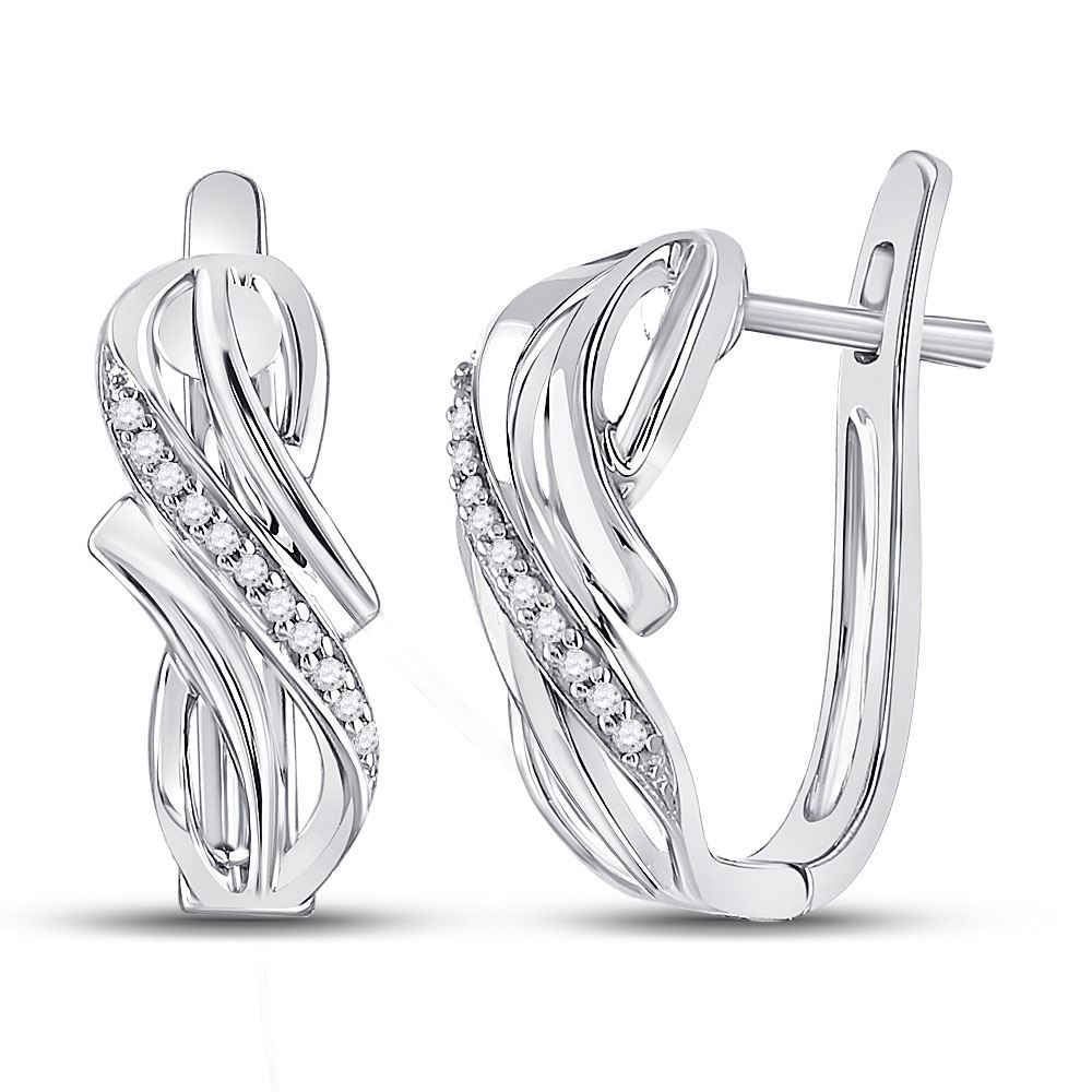 REF-23T3V - 1/12 CTW Womens Round Diamond Hoop Earrings 10kt White Gold - REF-23T3V