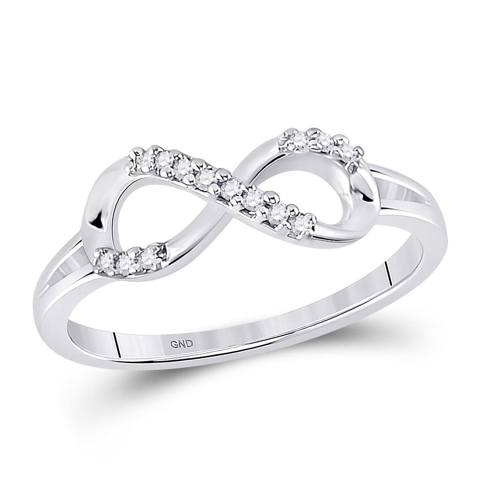 REF-15Y2N - 1/12 CTW Womens Round Diamond Infinity Ring 10kt White Gold - REF-15Y2N